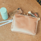 One handy way to use the pouch is by mixing business and pleasure. Store everything you use on a regular basis, from your debit card to lip gloss.