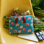 Decadent Blooms features a textile from Liberty Fabrics, which has fans all over the world. The dusky turquoise is printed with big peonies, roses, and forget-me-nots for a gorgeous, exotic look. The cover interior is beige, and the zipper pull includes a dark red tassel.