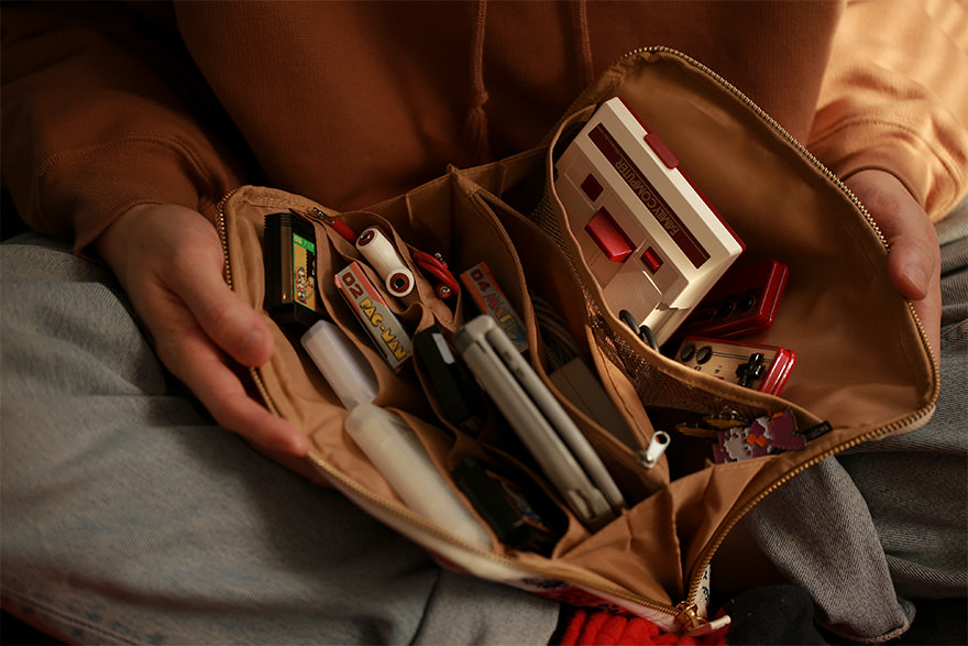 The pouch can hold many items, but its slim size and compact shape make it easy to fit into a bag.