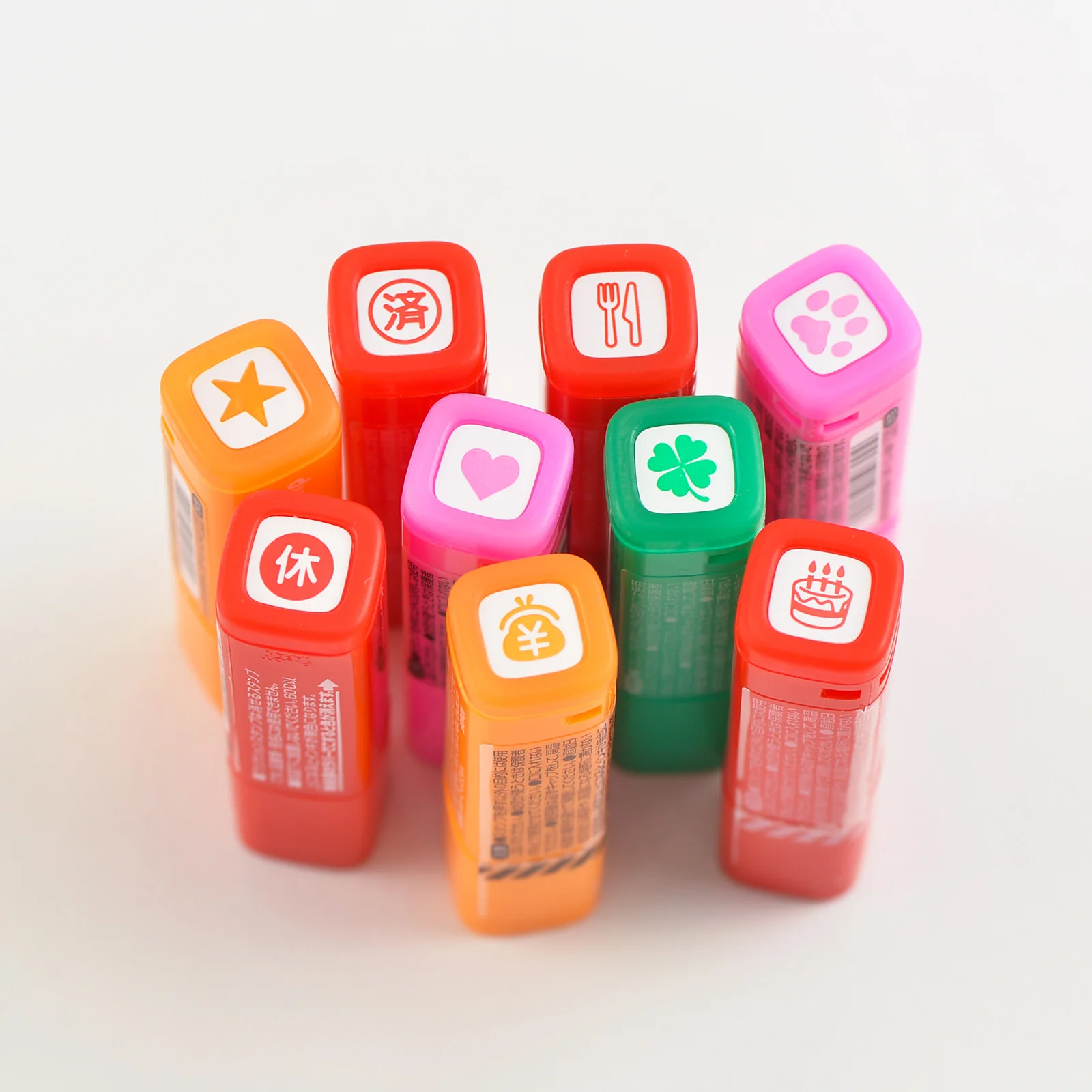 Frixion StampThese erasable-ink stamps are specially-designed for use in planners. After the ink dries, you can use the special rubber eraser at the end of the stamp to rub away the ink. These stamps are an excellent way to retain flexibility if your plans changeor move to a different date. The self-inking stamps contain a cap and do not require an additional ink pad. You can also attach a strap to each mini stamp, which fits in the palm of your hand.