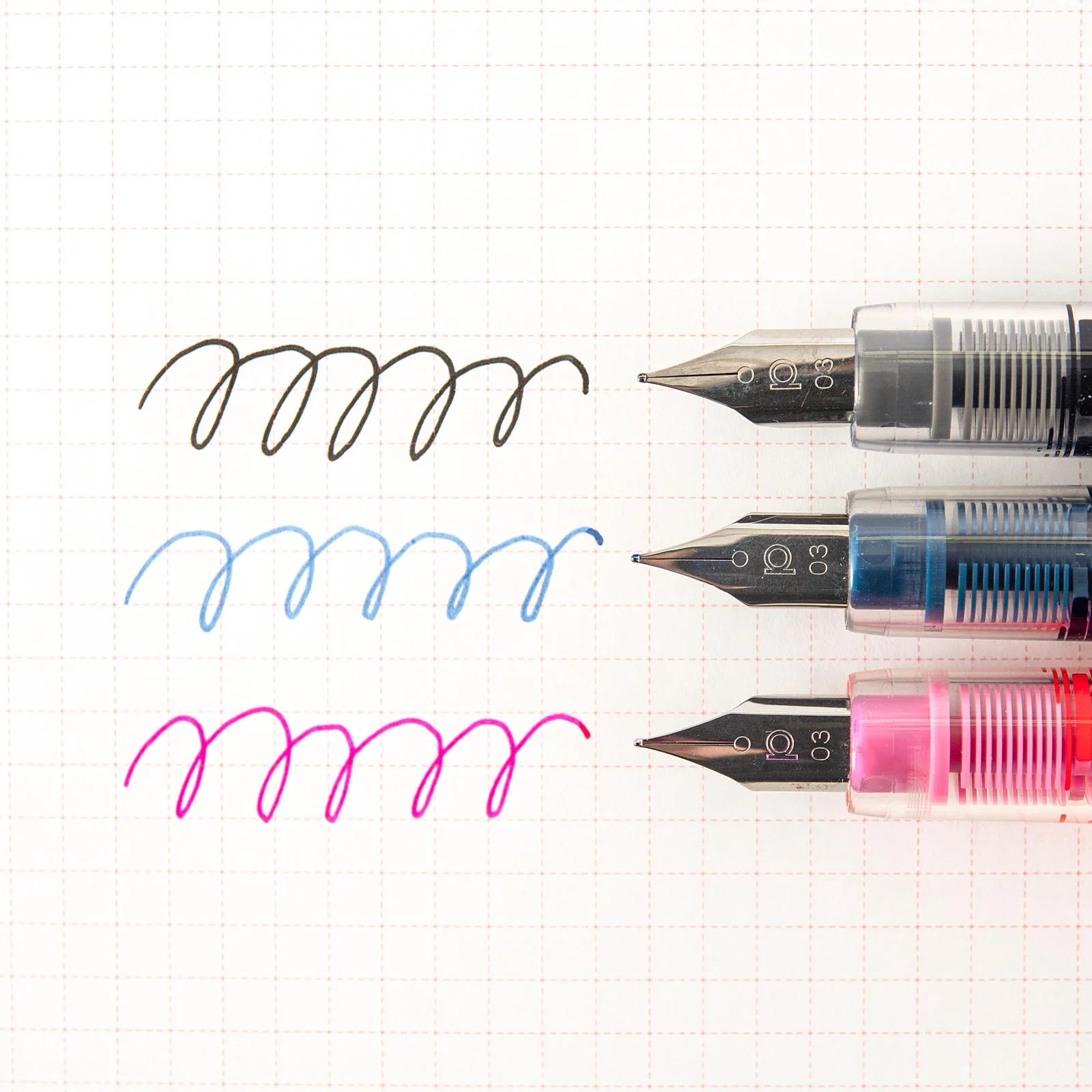These fountain pens can be used casually. The pen tip is a fine 0.3mm, and uses a stainless steel that’s strong against friction. You’ll be able to write in small letters with ease, and also have a smooth writing experience.