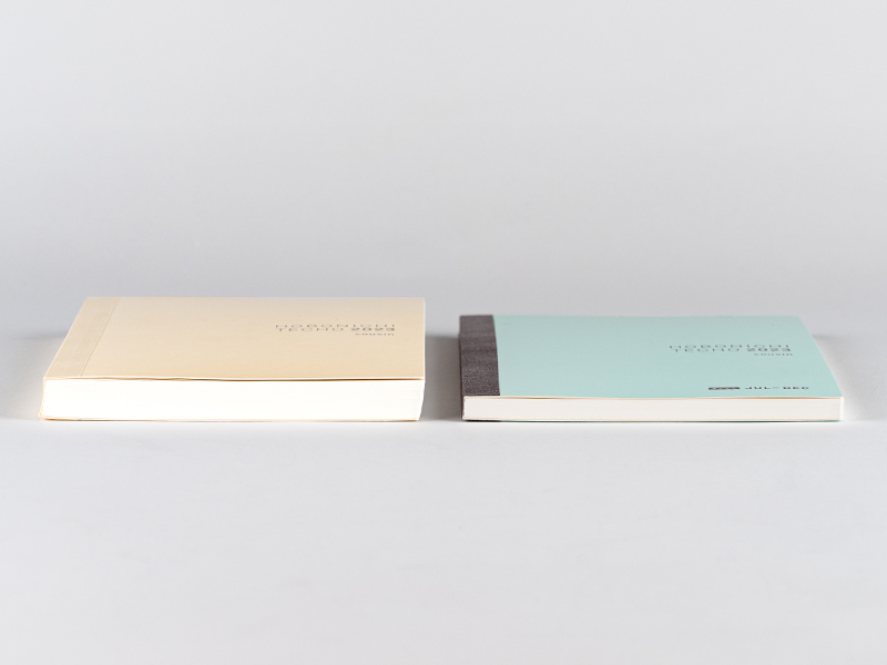 The covers are matched with a color scheme of lime yellow and ice blue. The spine tape is a reddish-brown to give the color scheme a unique look.