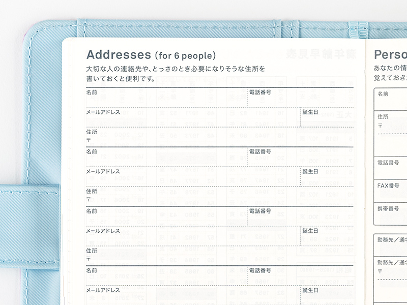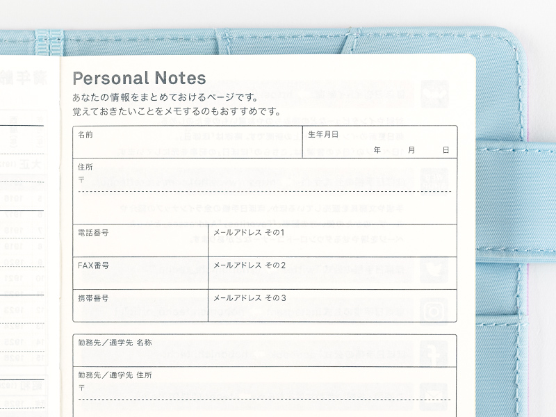 This page contains a checklist of items to have ready in case of an emergency. There is also a space to list nearby evacuation zones (common in Japan), emergency contact information and topics discussed between family and friends.