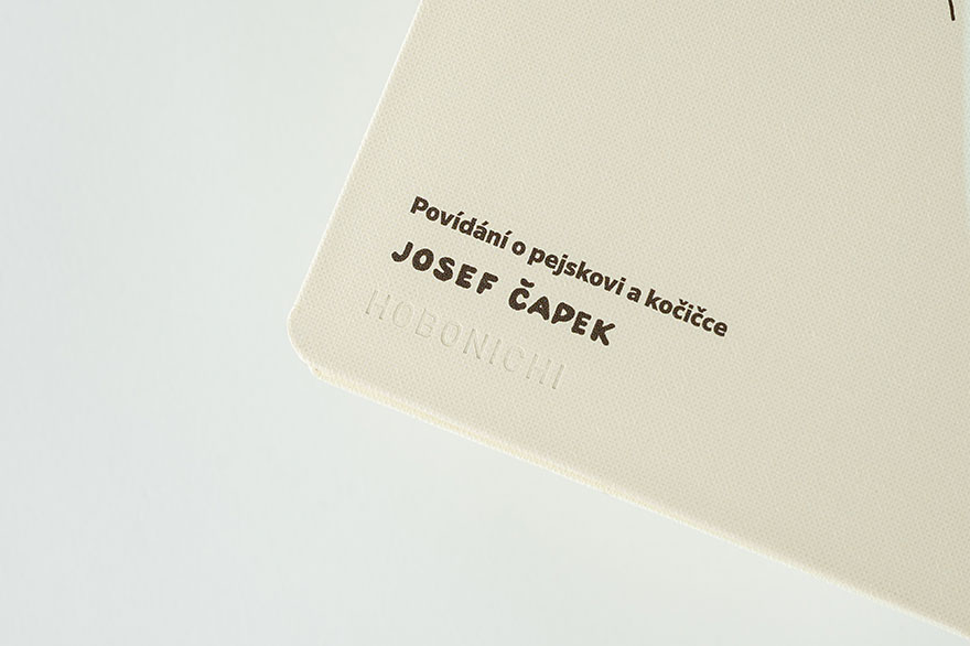 The back of the cover shows the author Čapek visiting Doggie and Pussycat’s house. On the bottom left is Josef Čapek’s signature and an imprint of a Hobonichi logo.