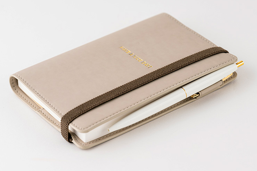 Because the cover lacks butterfly stoppers, which usually hold the cover shut, it instead has an elastic band designed to keep the cover shut. It also includes a hook that can hold a pen by its clip.