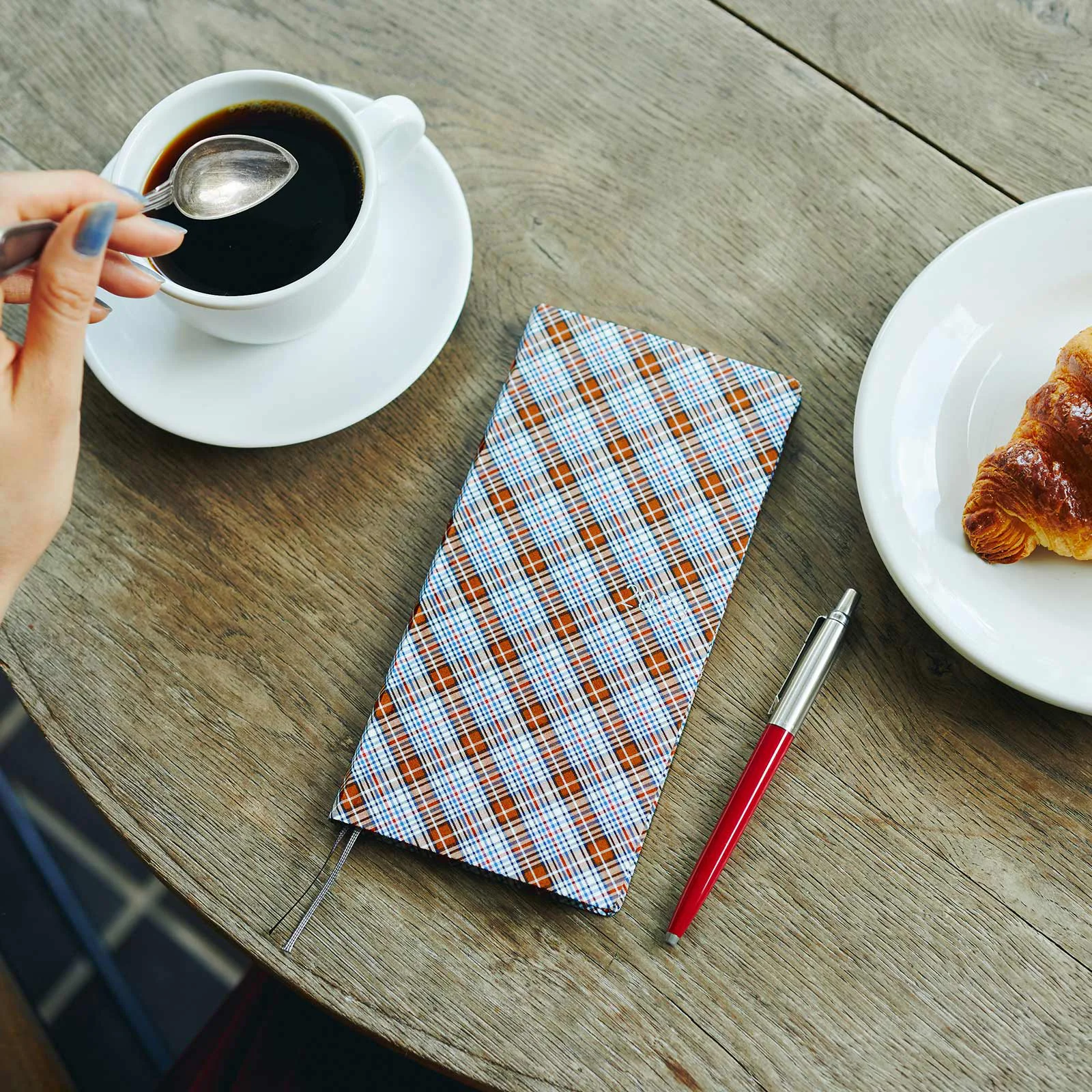 This basic plaid design is unaffected by fads, but still provides a Weeks book with a playful feel.