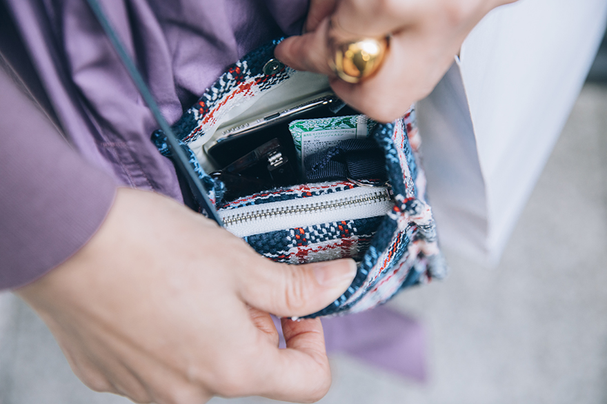 Carry it with you when you want to wander around the neighborhoods of your hotel or go down to have breakfast. Bring along your room keys, wallet, handkerchief, books, and the minimum items you need.