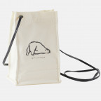 The polar bear cubs doted on by their mother are depicted with thick, soft lineart and given adorable expressions. The back of the pouch has a polar bear splayed out on its belly and relaxing. Just looking at it will give you a gentle feeling inside.