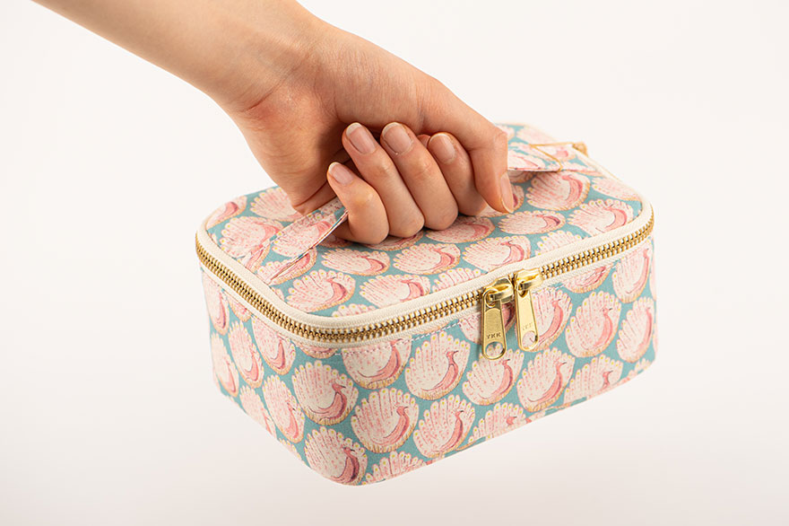 Use it as a makeup case to use at home or for when you travel. Organize bits and pieces in the pocket at the back of the lid. (Pictured: Desk Garden)