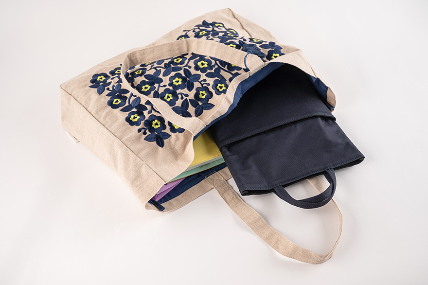 This slim and lightweight tote bag can store a 13-inch laptop or A4 size documents so you can store it all together and comfortably carry it around anytime, anywhere you go. The fabric gently wraps the contents like a sandwich, hence the name Panini.
