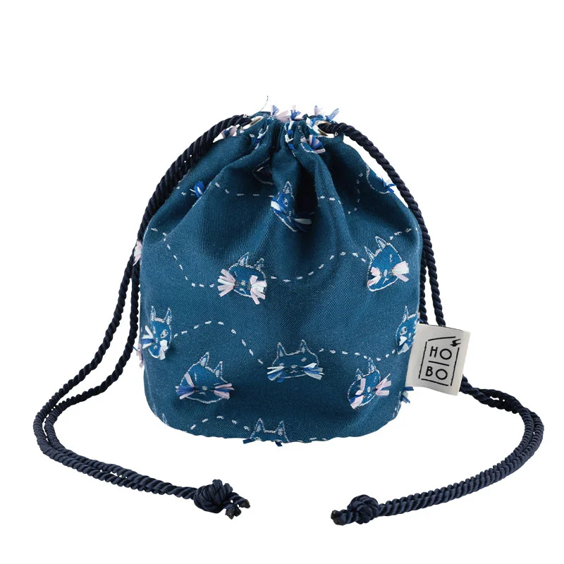 Whisker Cat places stitched images of cute cats and wavy lines against a deep blue background. The cats’ whiskers are made with white, pink, and light blue threads that have been cut one by one to the perfect length so you can enjoy the feel of the 3D effect against your fingertips. Look closely and you’ll see the faces of the cats vary, including some with wide eyes and some with narrowed eyes. The bag interior has a lustrous pink material to provide a charming contrast against the blue every time you open the bag.