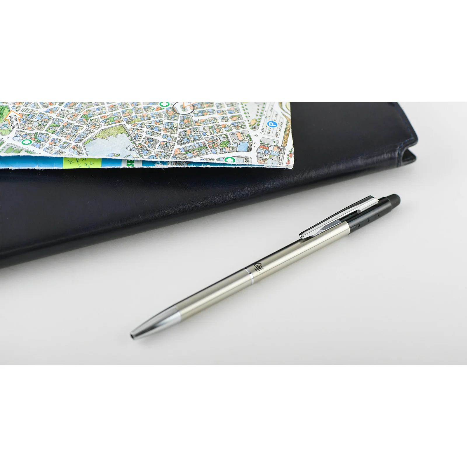 The pen tip is a slim 0.38 mm for detailed writing anywhere in the pages. The pen body and clip are made with stainless steel and have a slim, simple look that fits well in business settings.