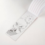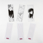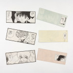 The vertical “Gaze” letter paper makes full use of frames from the manga, with the strong gazes of the characters behind their dialogue. There are a total of six illustrations in the letter paper set. The glossy cover of the paper set is made with thicker paper that you can either use to pass a message as well, or hang it up as a decoration.