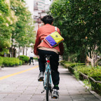 This photo shows the diagonally strapped case carried. The case is attached close to the body, and is perfect for anyone who cycles to work.