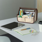 The interior also has pockets of various sizes that can store items based on their size and shape. The largest pocket is long enough to hold a memo pad or ruler. The small pocket can store sticky notes, cards, stickers, and other slim objects. The left pocket can hold pens.