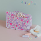 The lid opens wide, so even if you keep a lot of items in the pouch, you can still see what's inside. There's also a handle that makes it convenient for carrying around.