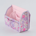 The interior also has pockets of various sizes that can store items based on their size and shape. The largest pocket is long enough to hold a memo pad or ruler. The small pocket can store sticky notes, cards, stickers, and other slim objects. The left pocket can hold pens.