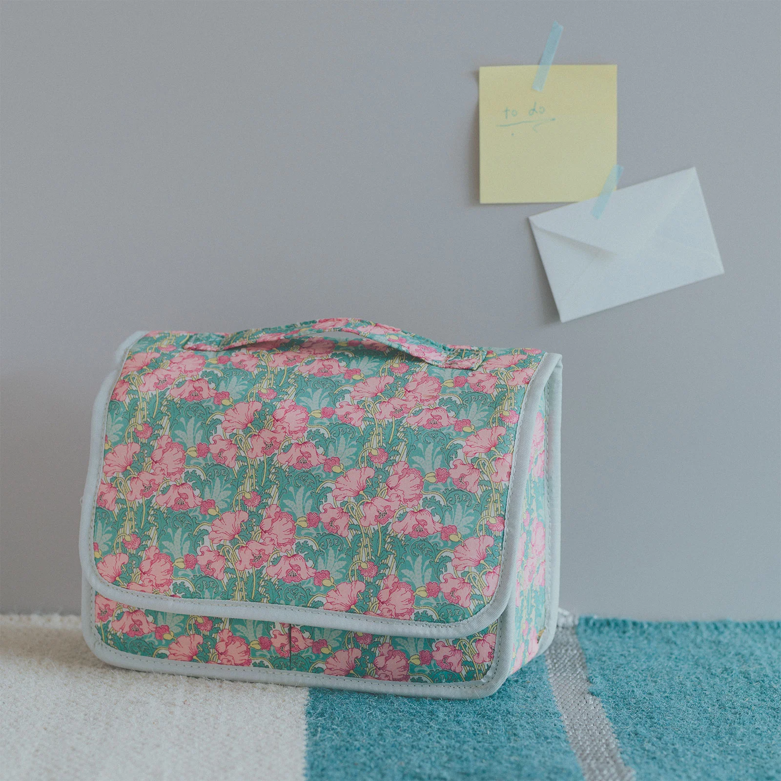 The lid opens wide, so even if you keep a lot of items in the pouch, you can still see what's inside. There's also a handle that makes it convenient for carrying around.