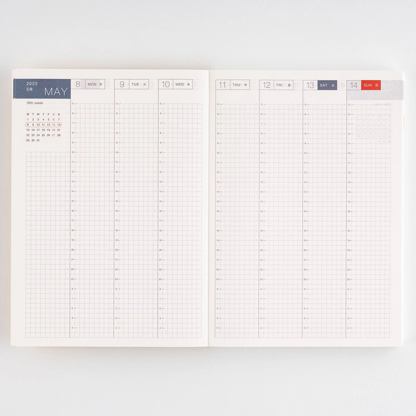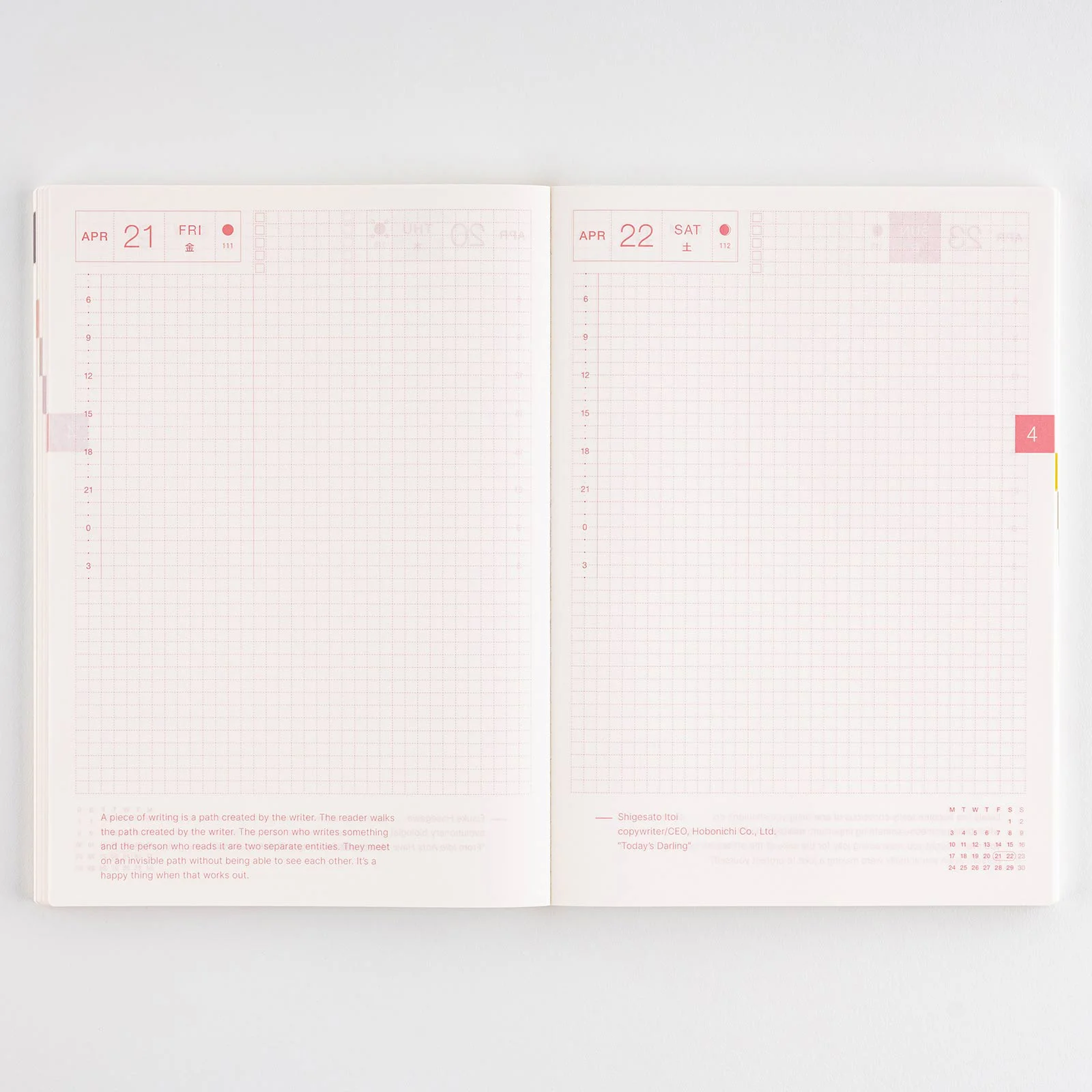 The book layout is the same as the Japanese edition, as it also contains a page per day, a yearly calendar, monthly calendar, yearly index, and the handy weekly diary where you can view a week at a glance to track your upcoming schedule. In anticipation of the English edition being used in various countries around the world, the calendars do not list holidays.