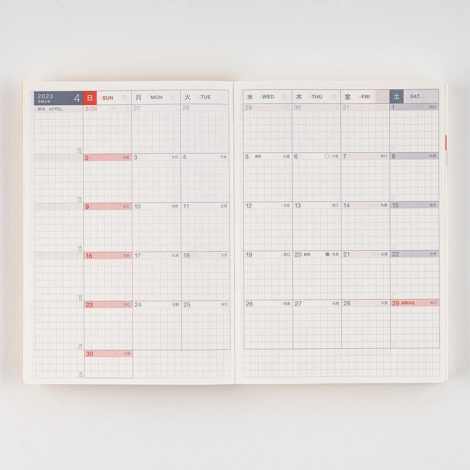 This original form of the Hobonichi Techo has been loved by many users since its introduction in 2002, and the 2023 edition marks the techo’s 22nd year. Its daily pages offer plenty of space to fill despite the book’s compact A6 size. The graph paper offers an open layout for you to neatly lay out writings, clippings, and drawings.