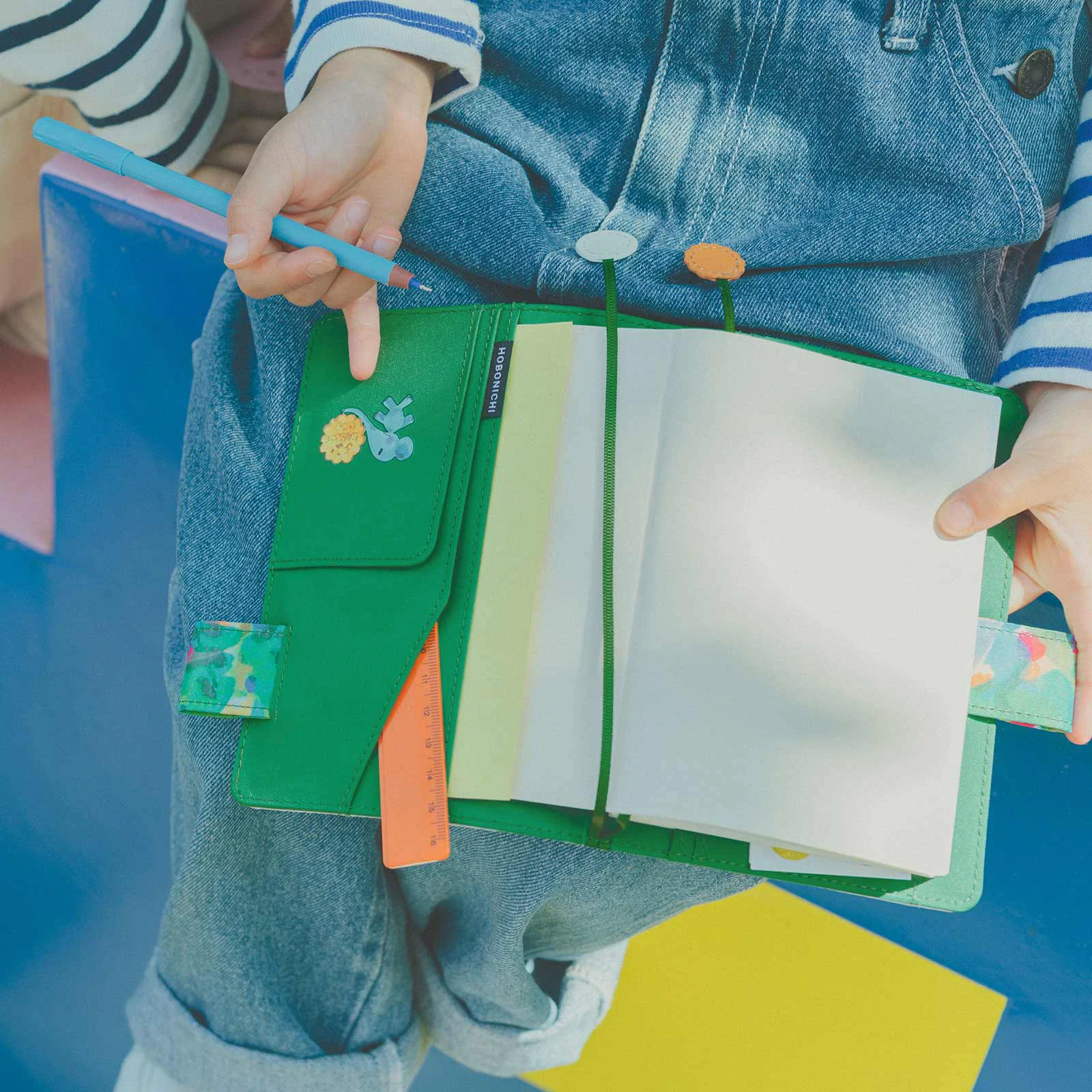 The pen holder is designed to perfectly fit the 12.2 mm (0.48”) diameter Jetstream pen offered as a free Hobonichi Store Exclusive. Pens with certain shapes and materials may be difficult to pull through the holder. The holder can fit pens up to 13.5 mm (0.53”) in diameter.