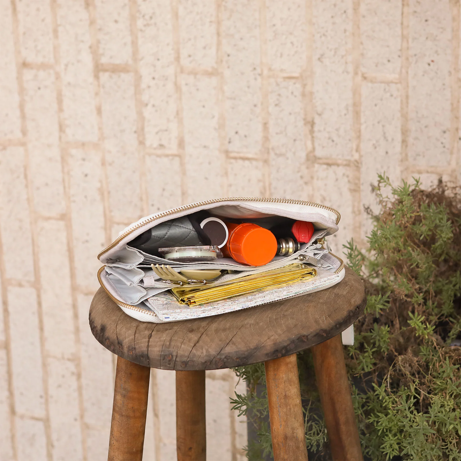 All the different compartments make the Áne a great makeup bag. You can organize the items by size and shape.