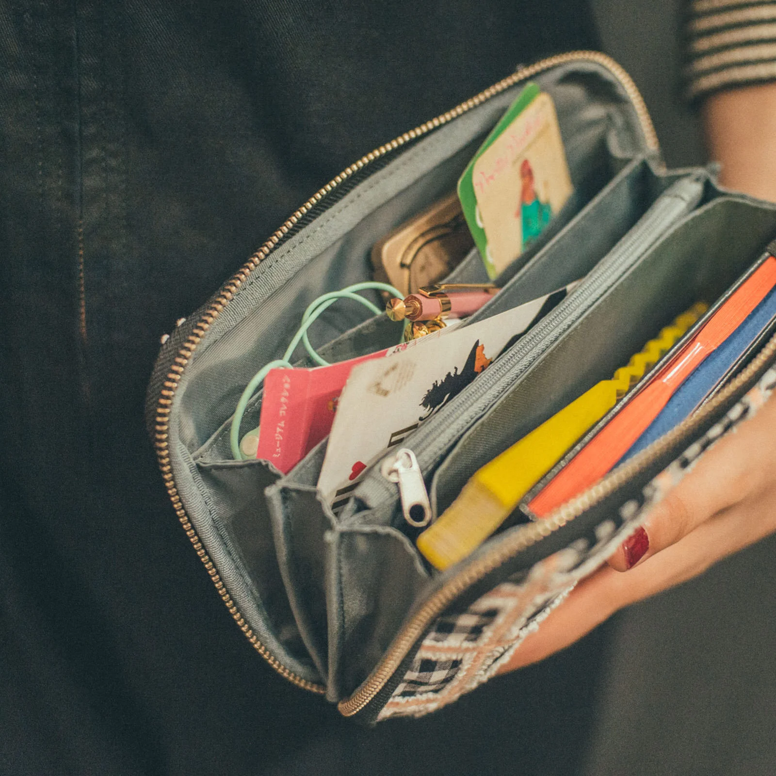 2. Use the pouch as a cute clutch to store things you use when around town, like your smartphone, cosmetics, or notepads.