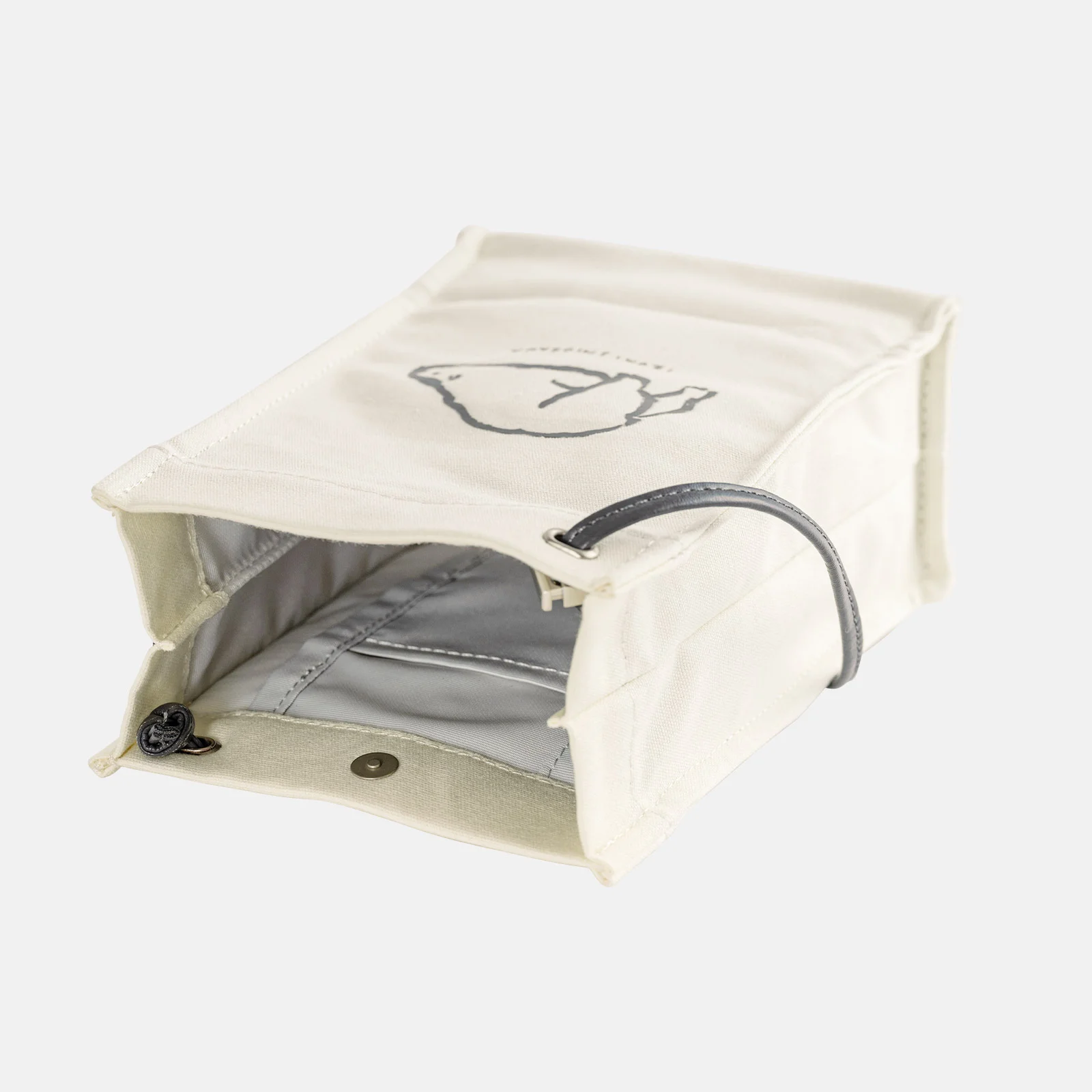 The polar bear cubs doted on by their mother are depicted with thick, soft lineart and given adorable expressions. The back of the pouch has a polar bear splayed out on its belly and relaxing. Just looking at it will give you a gentle feeling inside.
