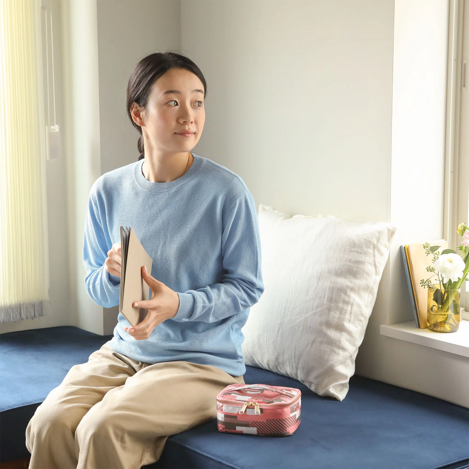 Use it as a makeup case to use at home or for when you travel. Organize bits and pieces in the pocket at the back of the lid. (Pictured: Desk Garden)
