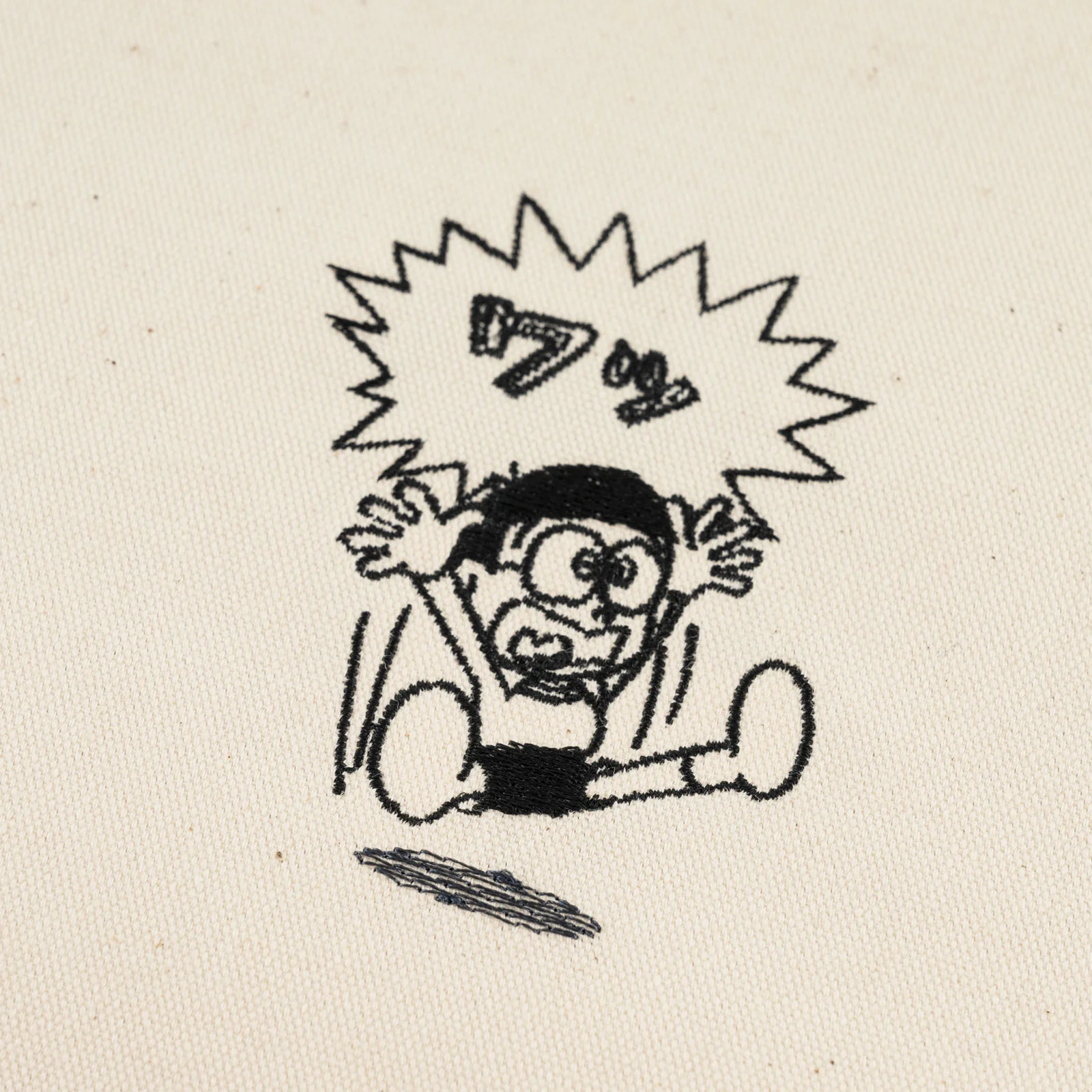 Doraemon rides on a time machine from the 22nd century and saves Nobita with various secret tools pulled out from his “4D pocket.” This pouch depicts the scene in the manga where Doraemon appears for the very first time using embroidery. The color scheme uses black and white, creating a chic look. This scene of Doraemon coming out of a desk “drawer” and Nobita jumping up in surprise is perfect for the “Drawer” Pouch.
