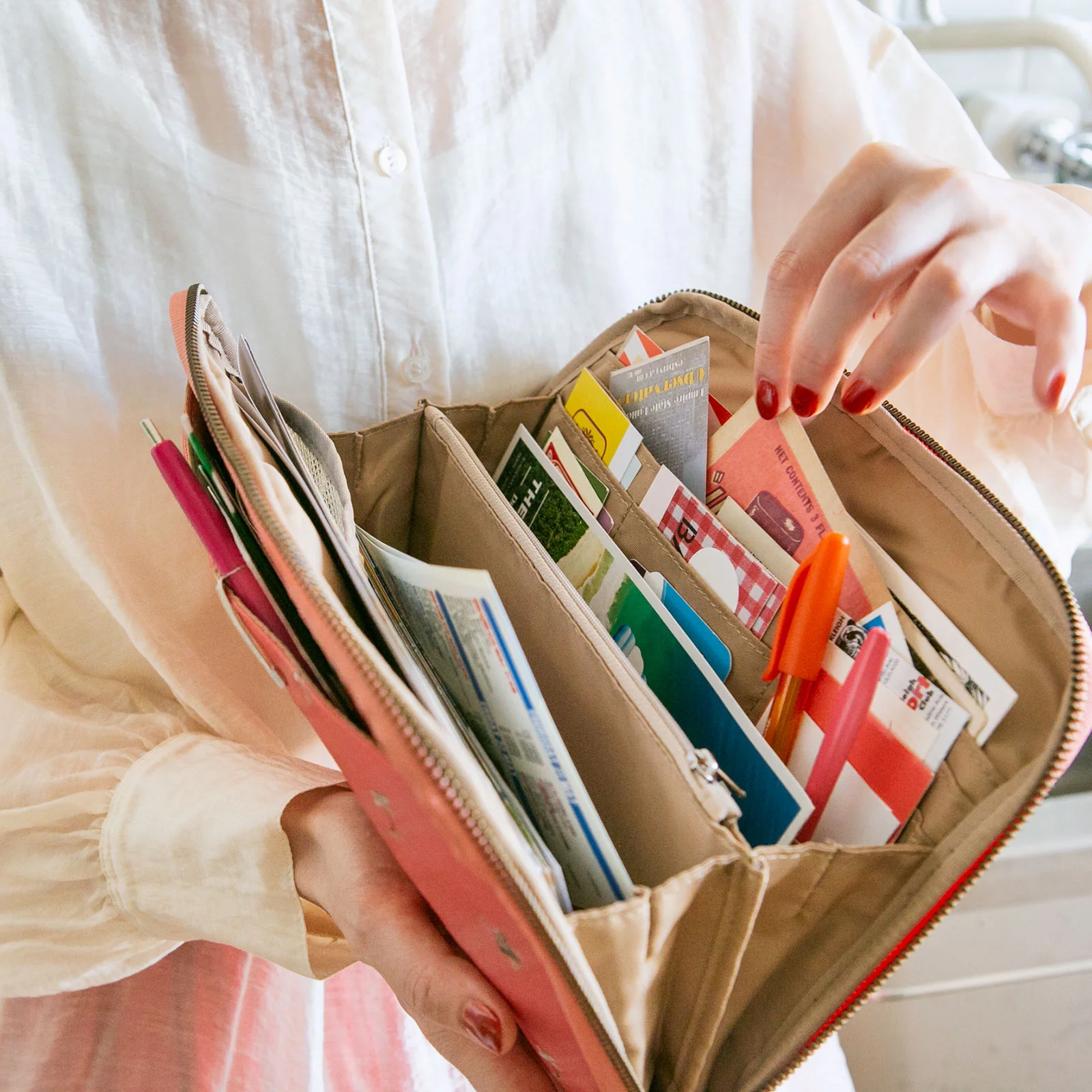 Keeping all your important items together in this pouch will leave the top of your desk and the inside of your bag much more organized. You’ll always be able to find what you need. It’s perfect for carrying around with you alongside your Hobonichi Techo so you can access things right when you need them.