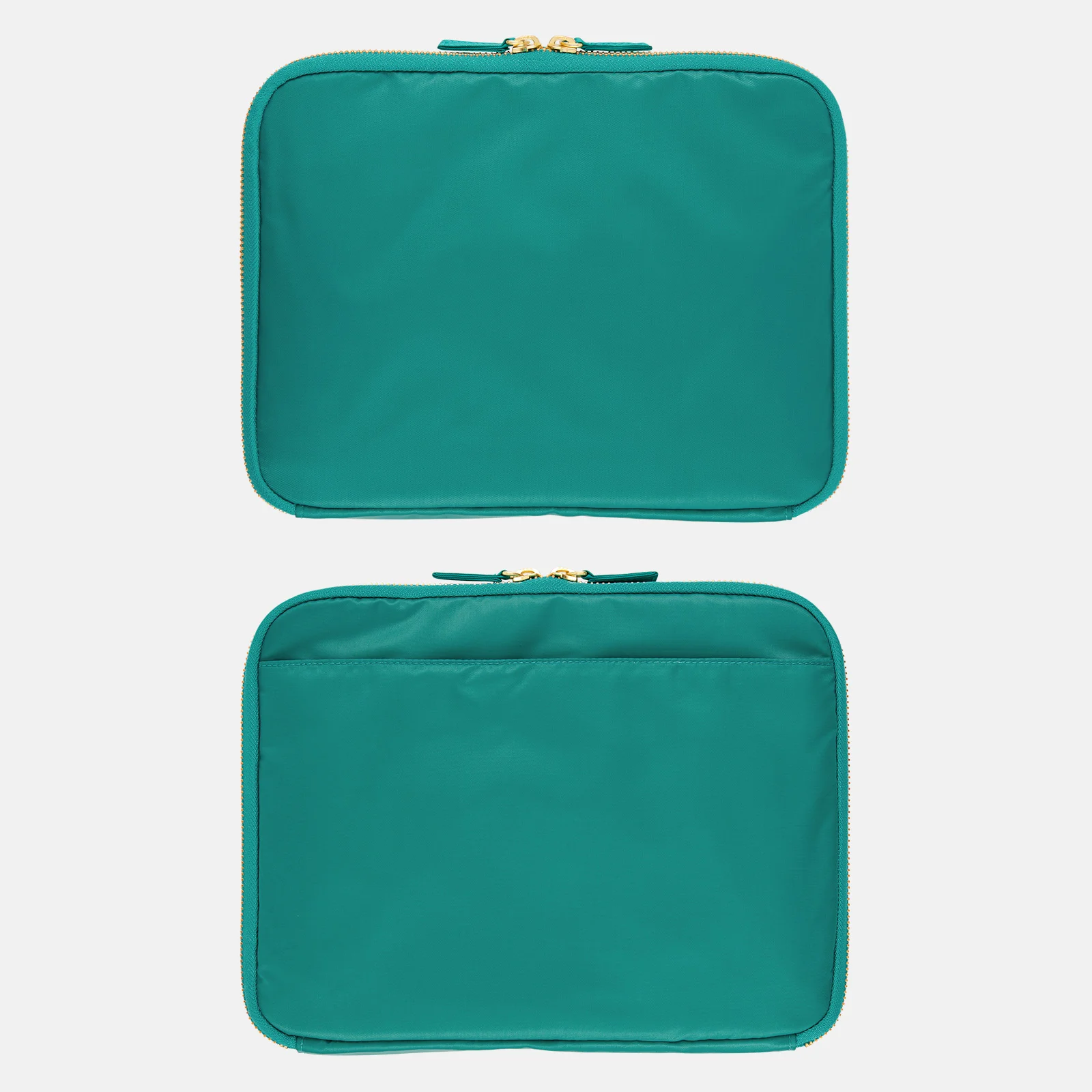 Turn your pouch into a convenient gadget case by storing your tablet, cords, chargers, and other accessories for your electronics. This provides an added bonus of cleaning up the clutter from your bag. (Pictured: Yellow)