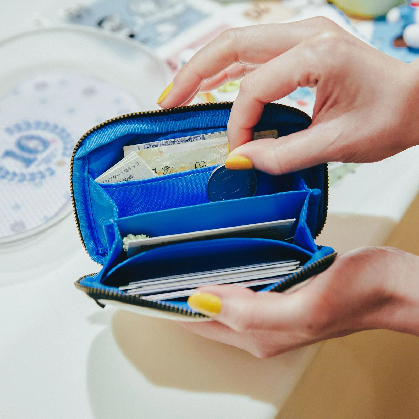 The pouch opens accordian-style and is the perfect size for storing cards. The interior is split into four zones to allow for detailed organization. While compact, the pouch also has enough storage space to hold items with volume, such as lip balm and earbuds.