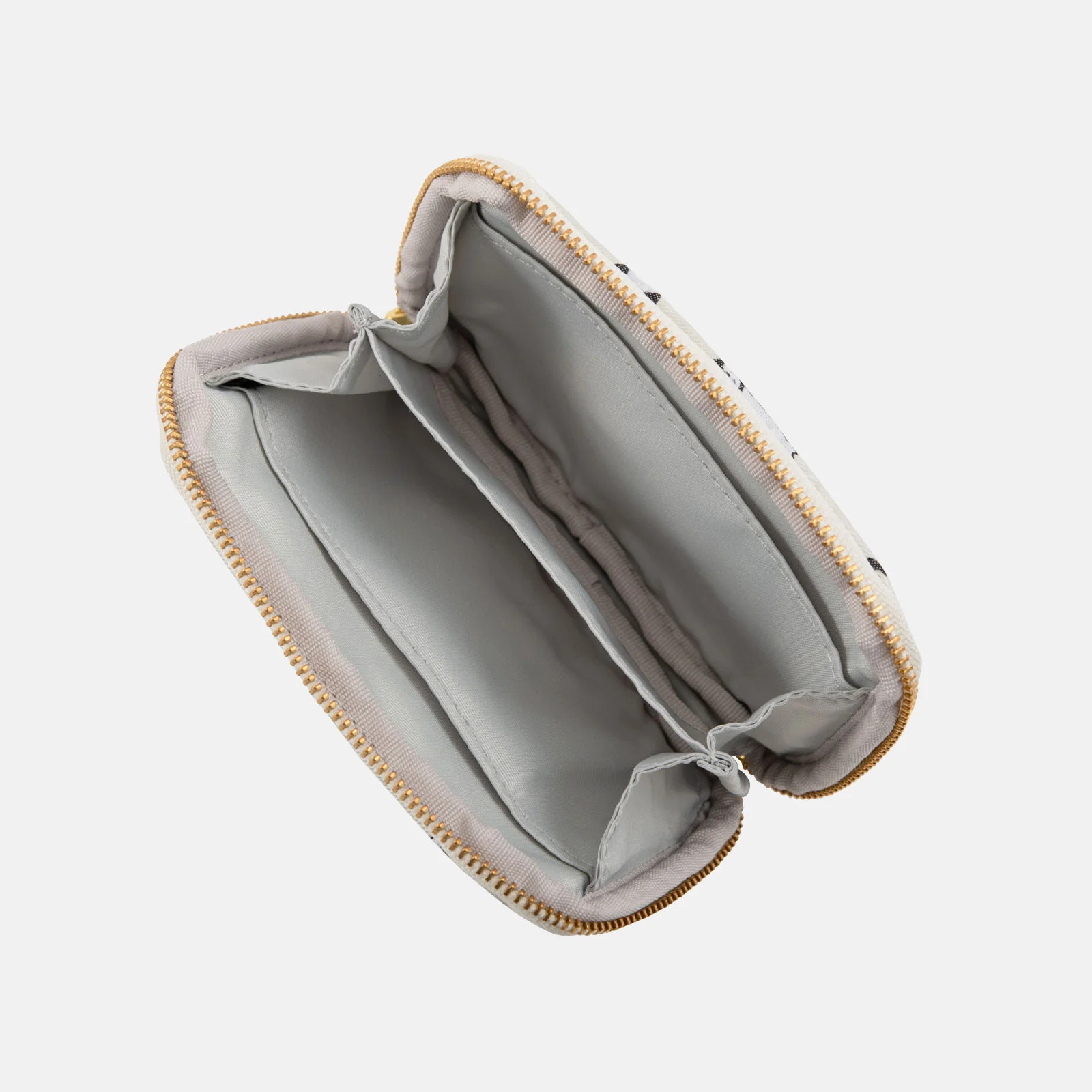 The pouch opens accordian-style and is the perfect size for storing cards. The interior is split into four zones to allow for detailed organization. While compact, the pouch also has enough storage space to hold items with volume, such as lip balm and earbuds.