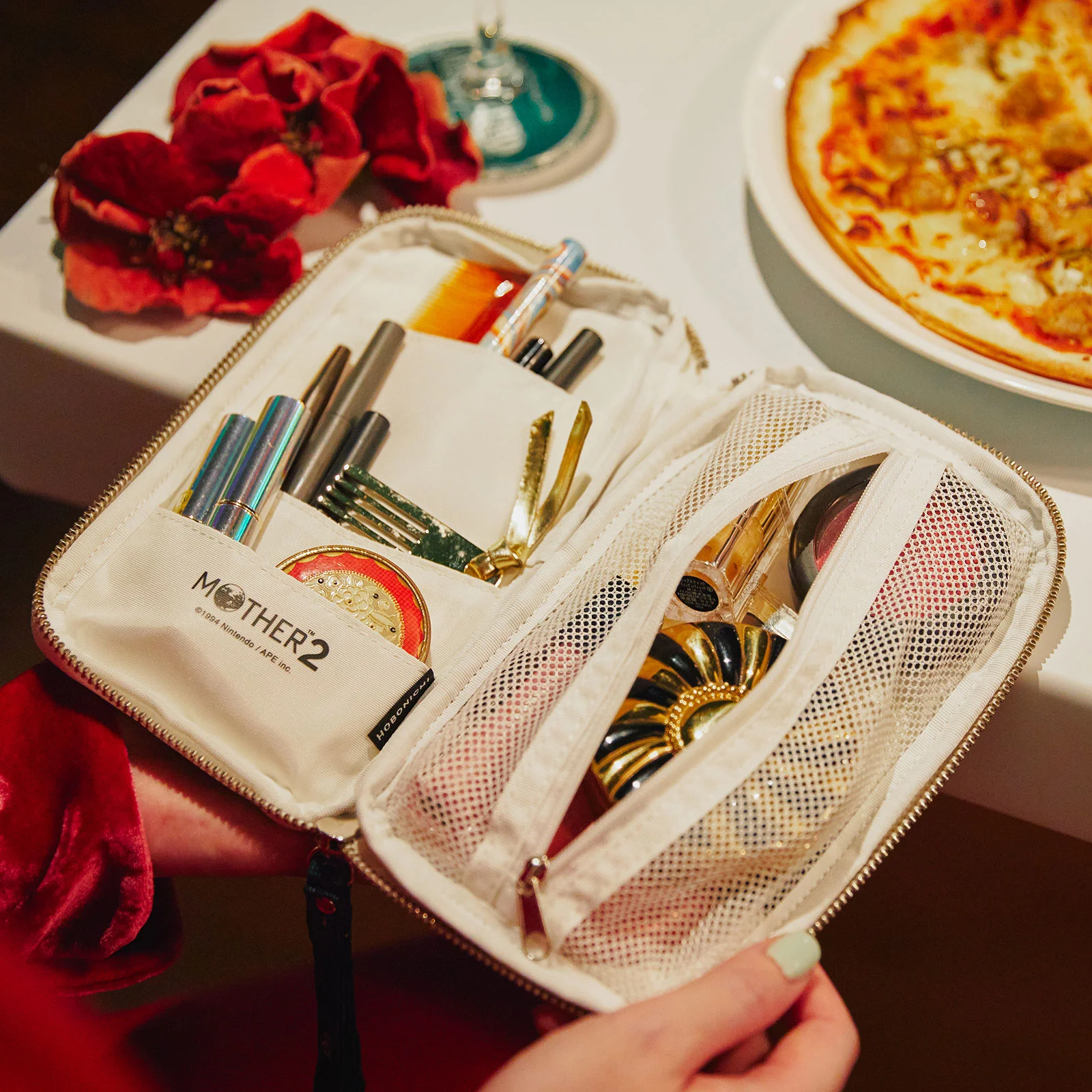 The Runaway Five is a blues band from Shigesato Itoi's 1994 Super Nintendo game, MOTHER 2 (EarthBound in North America). When they’re not rescuing our heroes, they’re performing memorable concerts. Now you can brighten every day with this upbeat crew! The dark green Jacquard weave textile gives the pouch a mature look. The pouch interior is white, and the inner pocket includes a striking image of the lovely MOTHER 2 logo.