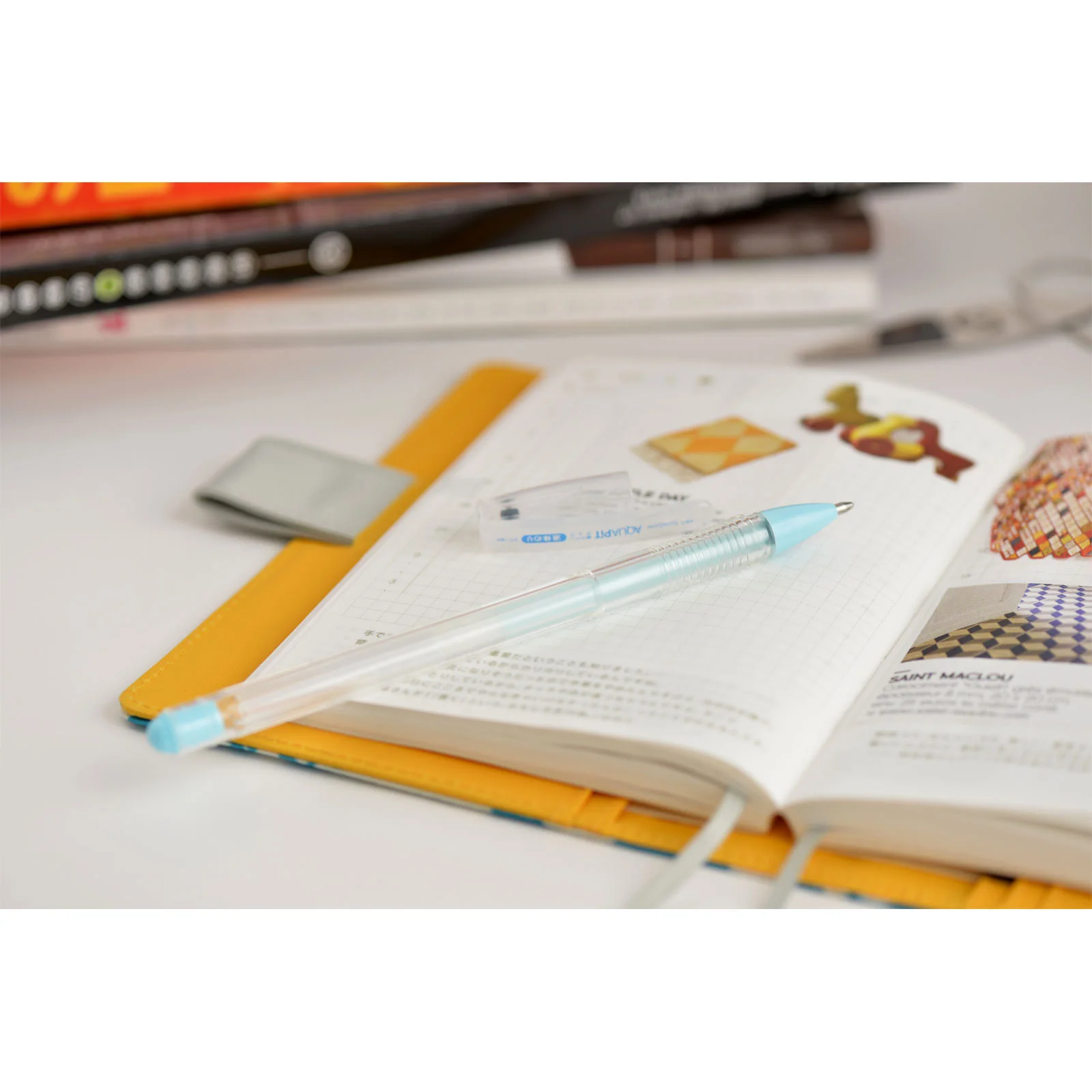 Tombow PencilAquaPit Acid Free Glue PenThis liquid glue comes in a pen case that makes it incredibly easy to carry around with your planner. The pen clip even allows you to carry it in the Hobonichi Techo cover’s pen holders. The glue pen dispenses glue in a 1 mm line, which makes it possible to apply glue in smaller and more detailed areas. The strong-bond glue not only glues pieces of paper together, but is also good for applying other types of material to paper, such as plastics or rhinestones. The acid-free* glue allows you to store your glued pages for a long time in good condition.