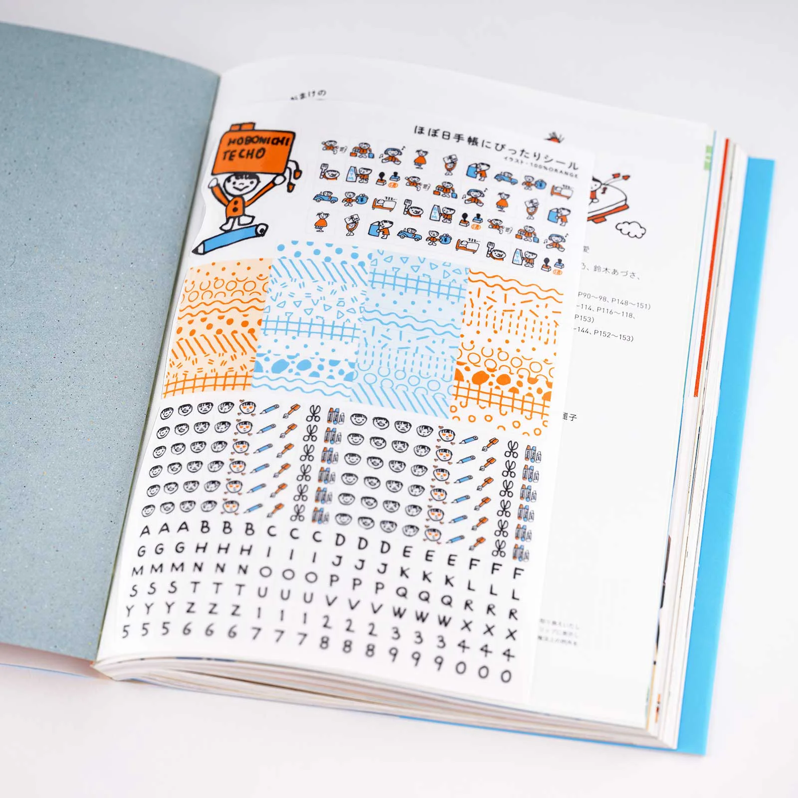 The first edition pressing of the official guidebook will include “Stickers Perfect for the Hobonichi Techo” at the back of the book. In order to prevent users from feeling hesitant to “waste” the stickers by actually using them, we’ve included plenty of them on an A5-size sticker sheet. It includes numbers, English words, expressions and actions that you can use for pages for scheduling or journaling. The stickers are transparent, so they’re extra cute and easy to use in smaller spaces, such as the edges of monthly calendar entries. There are also patterned stickers included that you can use like you would washi tape.