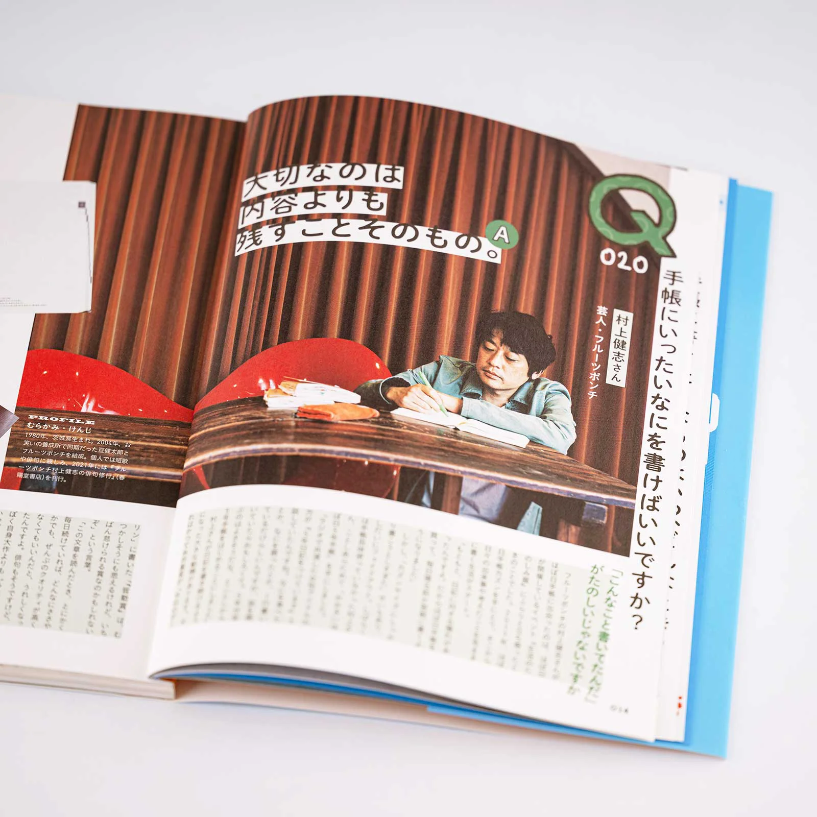 Model Kanoco finds time to go out and write in her techo as a means of treating herself now that she’s raising a child. One half of the comedy duo Fruit Punch, Kenji Murakami, started writing haiku in his techo. Nami Kishida, her younger brother Ryota, and her mother Hiromi reflect on what changed after the creation of the “365 Days” design. There’s also a staff of 90 people at a group home who kept an exchange diary, a couple who is almost done filling in a Hobonichi 5-Year Techo, and many other interviews that explore the wide variety of jobs that the techo is used for and ways that the techo is used.
