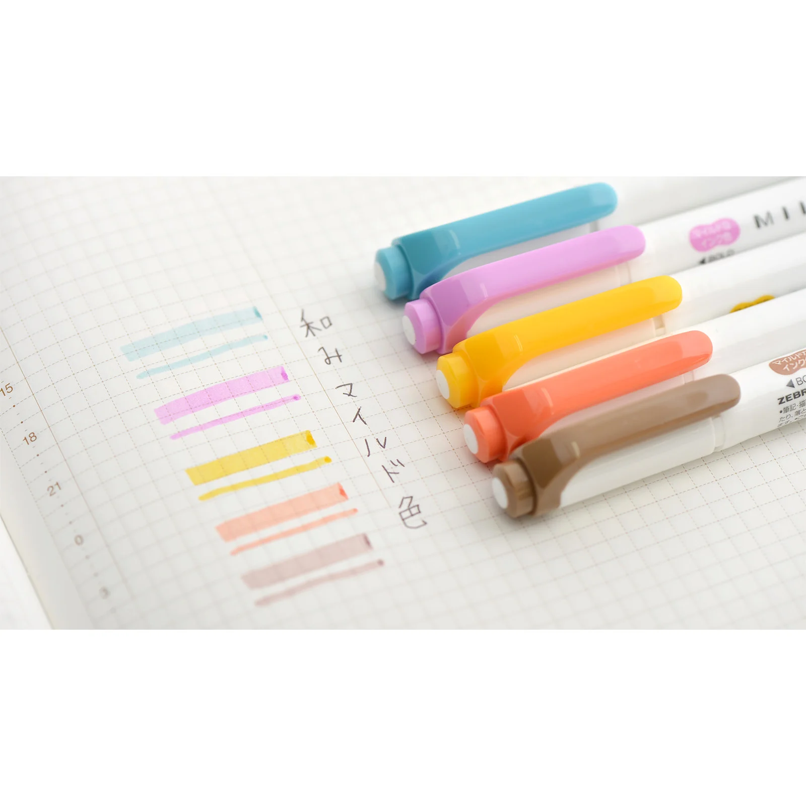 ZebraMildlinerThis highlighter marker set is a big hit every year with its light-colored ink that doesn't leak or smudge. The gentle colors are easy on the eyes, and the pen nibs come in thick and thin sizes on either end. These markers are great for coloring in grid squares to organize schedules or information and highlight notes. The ink is especially strong against leaking through the paper, making it a perfect match with the Hobonichi Techo.