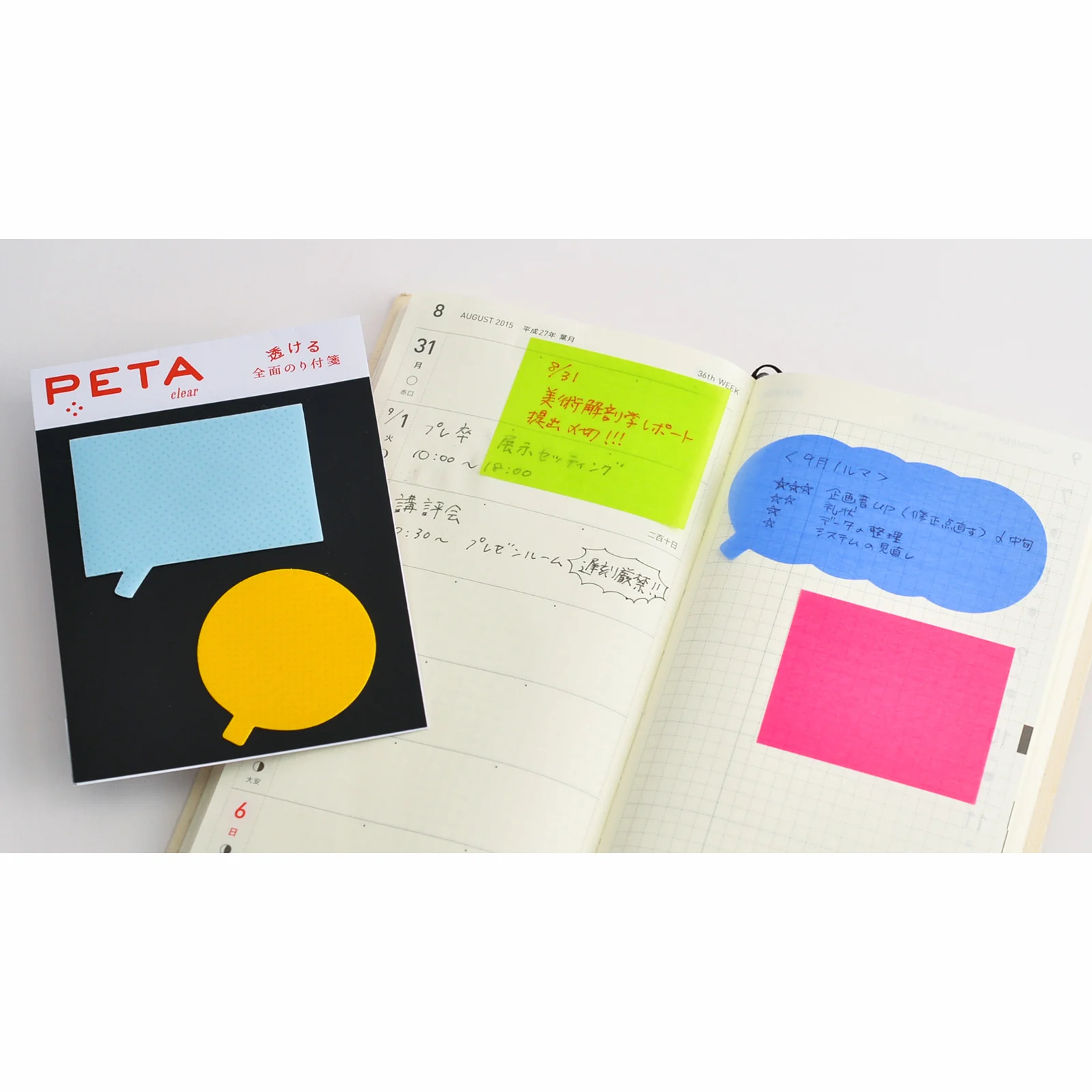PCM TakeoPETAThis see-through sticky note is made with smooth, sturdy tracing paper and works well for both pen and pencil. Unlike traditional sticky notes, the adhesive is across the entire back of the paper, making it better-suited for repeated use. (Before applying the sticky note to your page, you will see small dots where the glue is visible from the front. These will disappear once you remove the sticky note from its packaging and apply it to paper.)
