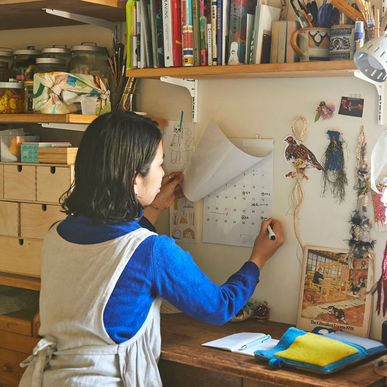 When purchased in the Hobonichi Techo Official Store, the calendar comes with a Memo Pit modeled after Lee Izumida’s work (available while supplies last). The Memo Pit is a reusable, double-sided adhesive strip that makes it easy to stick and unstick memos to various surfaces, turning any paper into a sticky note.