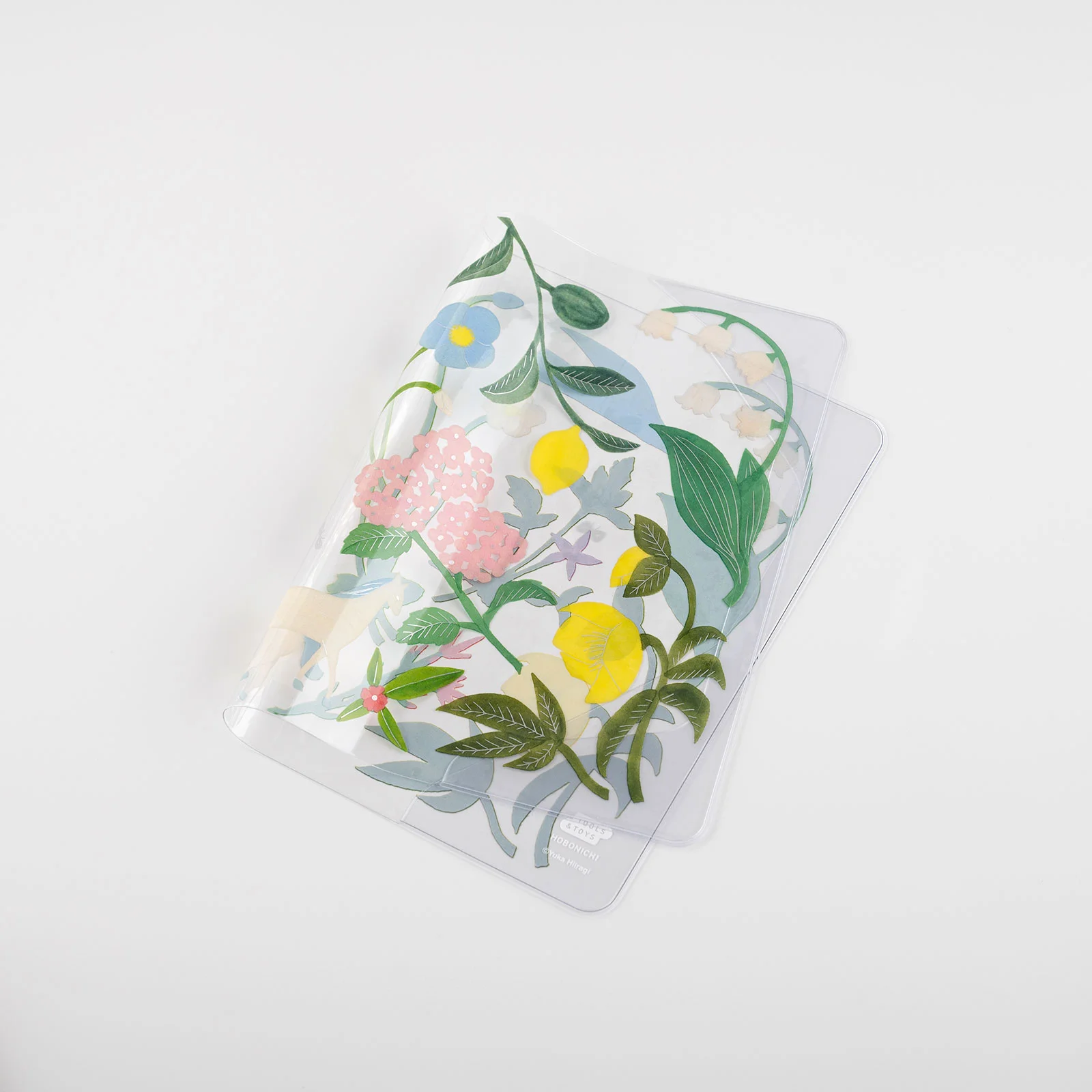 This is the decorated version of the Cover on Cover, an optional, extra covering that fits select Hobonichi Techo covers (for A5 size) to protect them from wear and tear while instantly giving solid-color covers a fresh new look. (Not for use directly on book.)