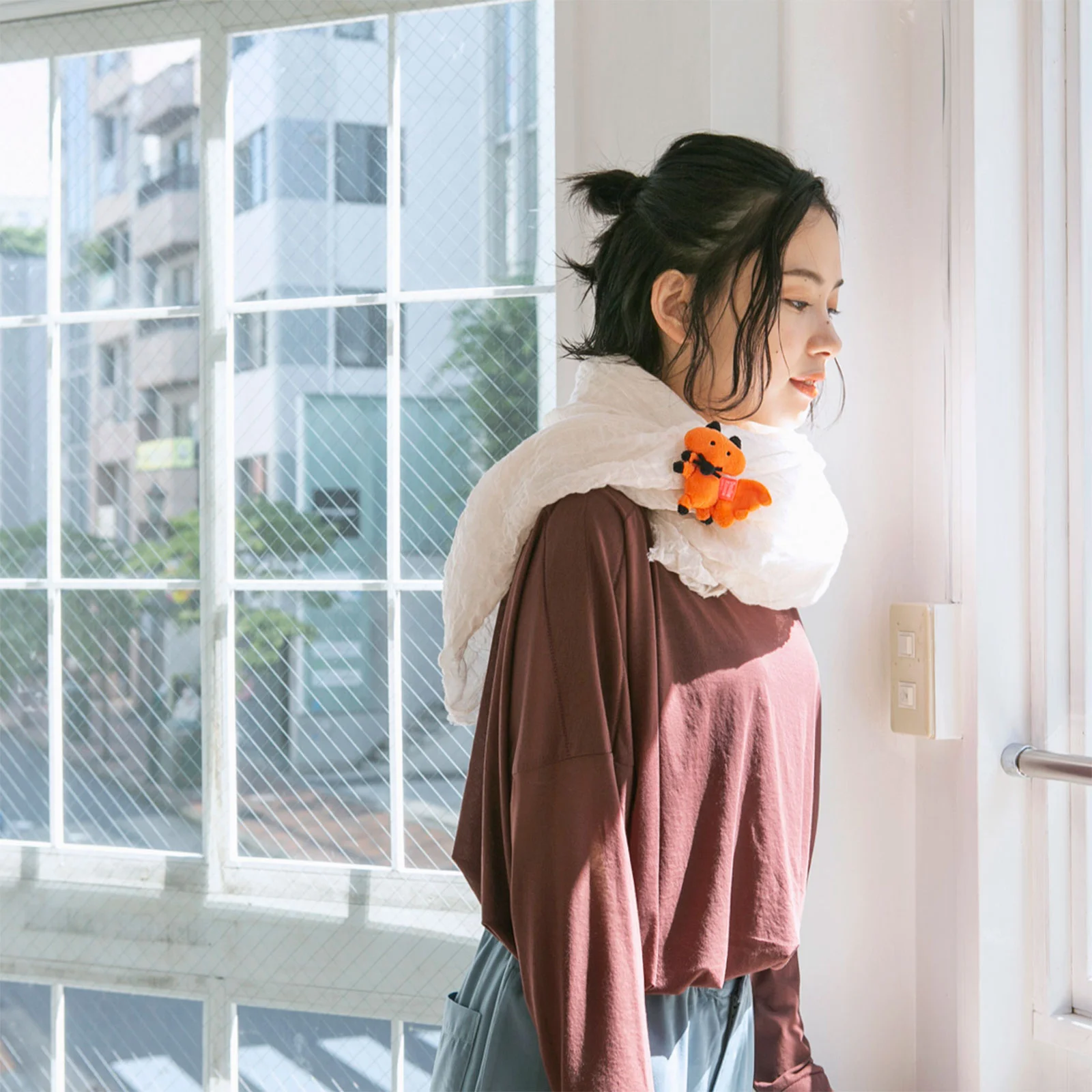 The plush toy is around the size of your palm, and is soft and squishy to the touch. There’s a pin on the back of his head, so you can attach it to various places. His round face, legs and arms that strike a pose, his large tail… every part of him is so cute!