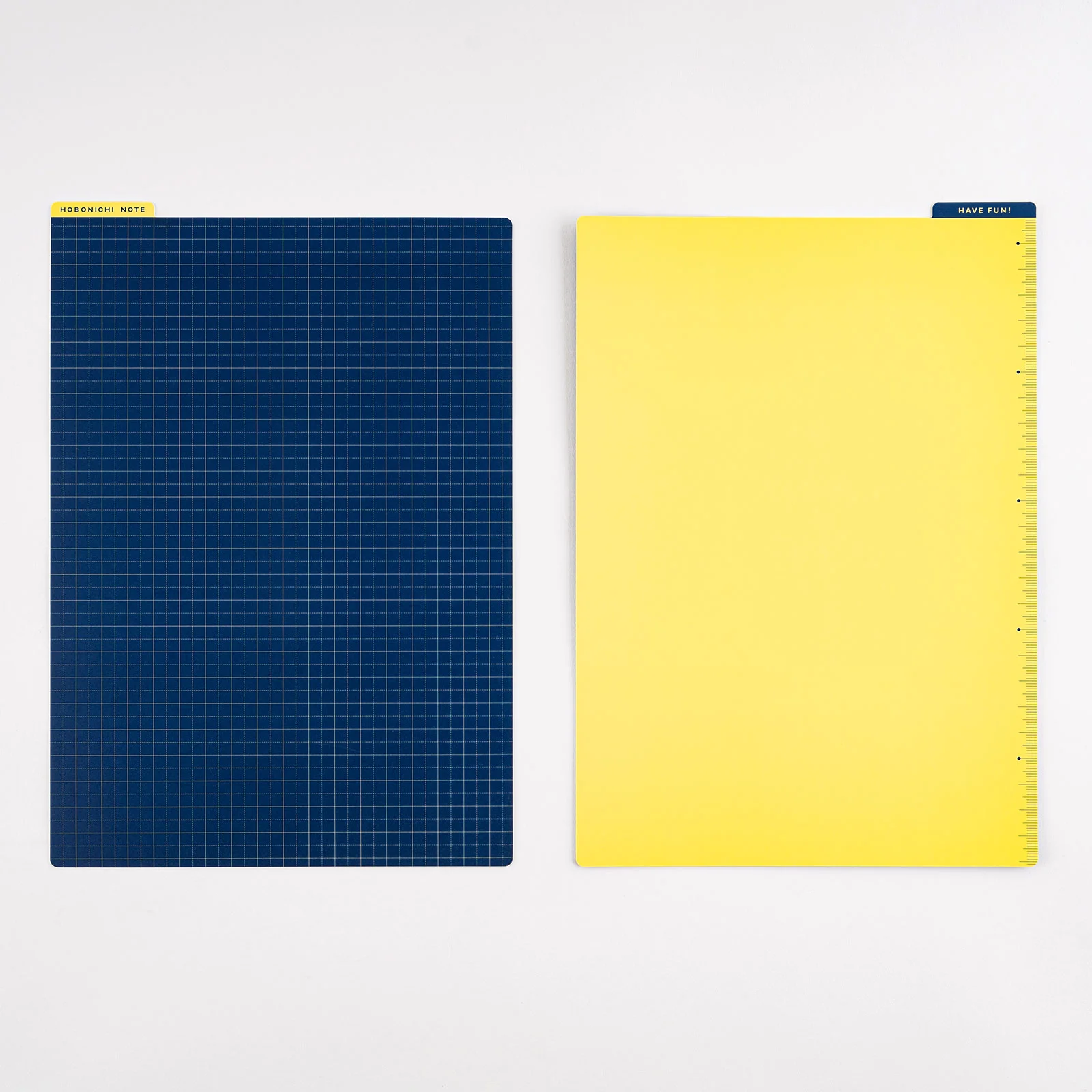 The front has a 5mm grid with a navy background. The back is a plain lemon yellow, with a 1 mm scale on the long side that can be used as a ruler. The reversible design lets you use it according to your mood- navy when you want to be concentrated and lemon yellow when you want to have a enjoy with a cheerful mind.