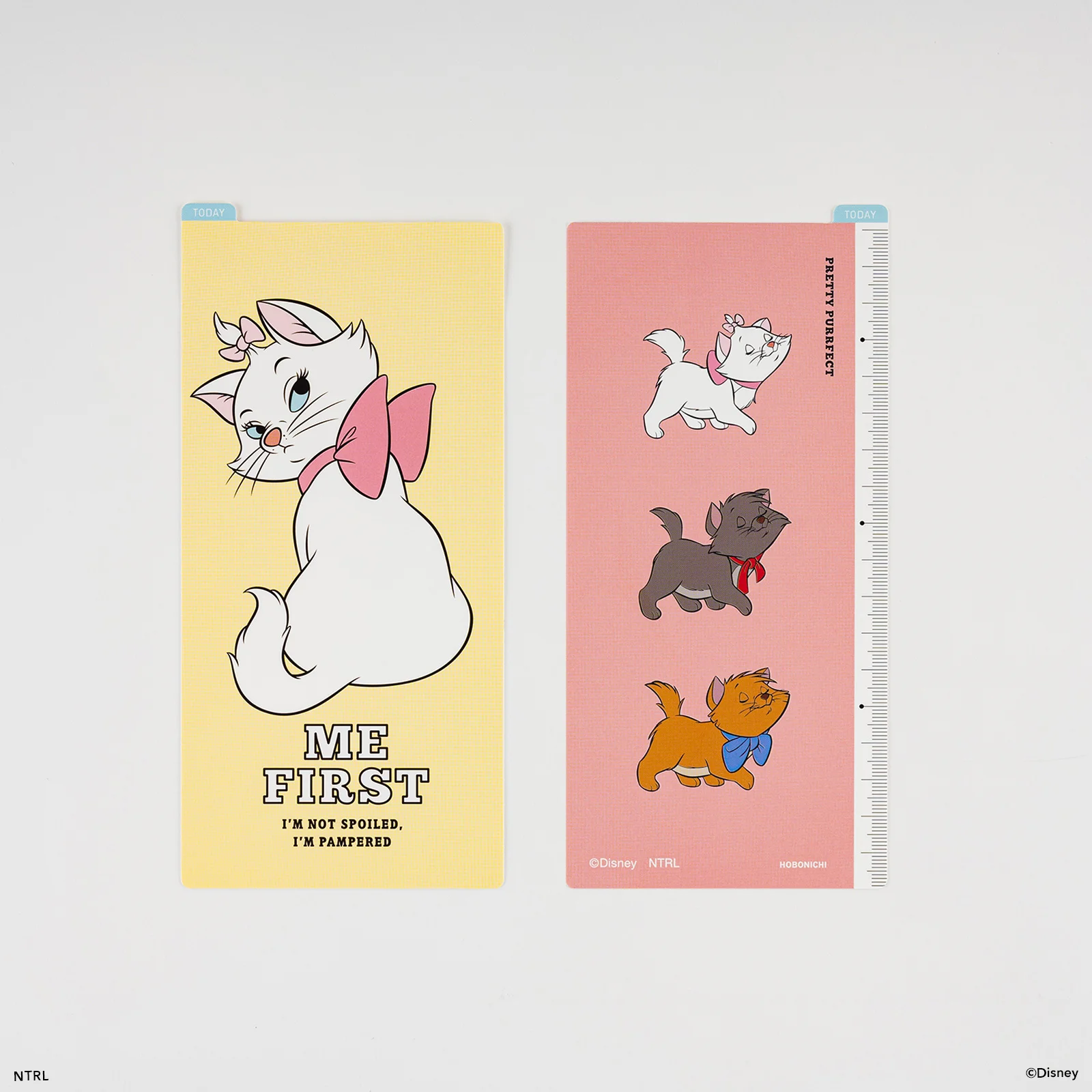 The Aristocats pencil boards come in three sizes: A6, A5, and for the Weeks. The designs feature the cute expressions and poses of Marie from the 1970 Disney Animation film The Aristocats. The back of each size pencil board has a different background color to give it a feel different from that of the front.