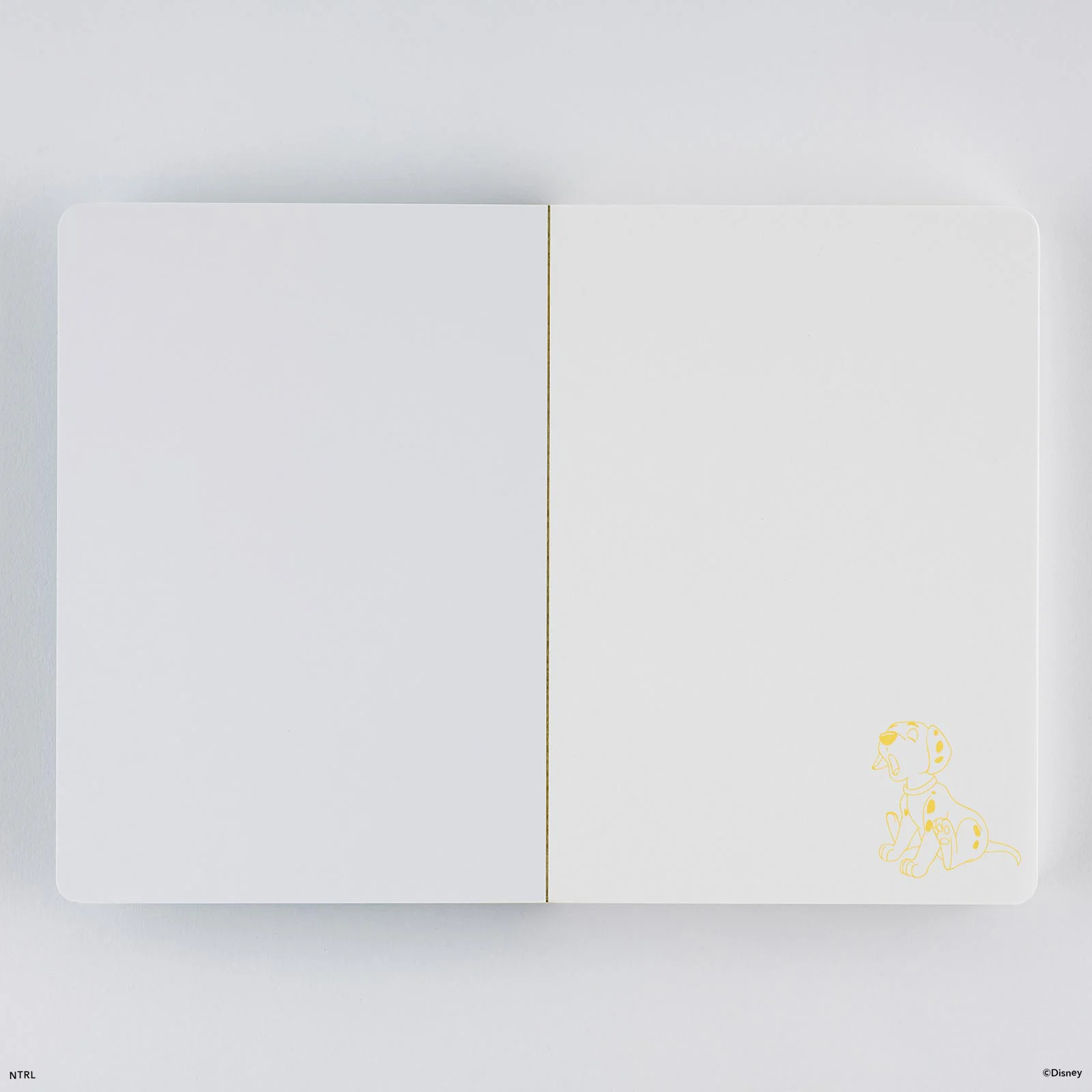 The cover artwork features the dalmatian puppies from the 1961 Disney Animation film One Hundred and One Dalmatians. The back of the cover shows two sleeping puppies. The interior pages are printed in yellow ink with lineart of a puppy.