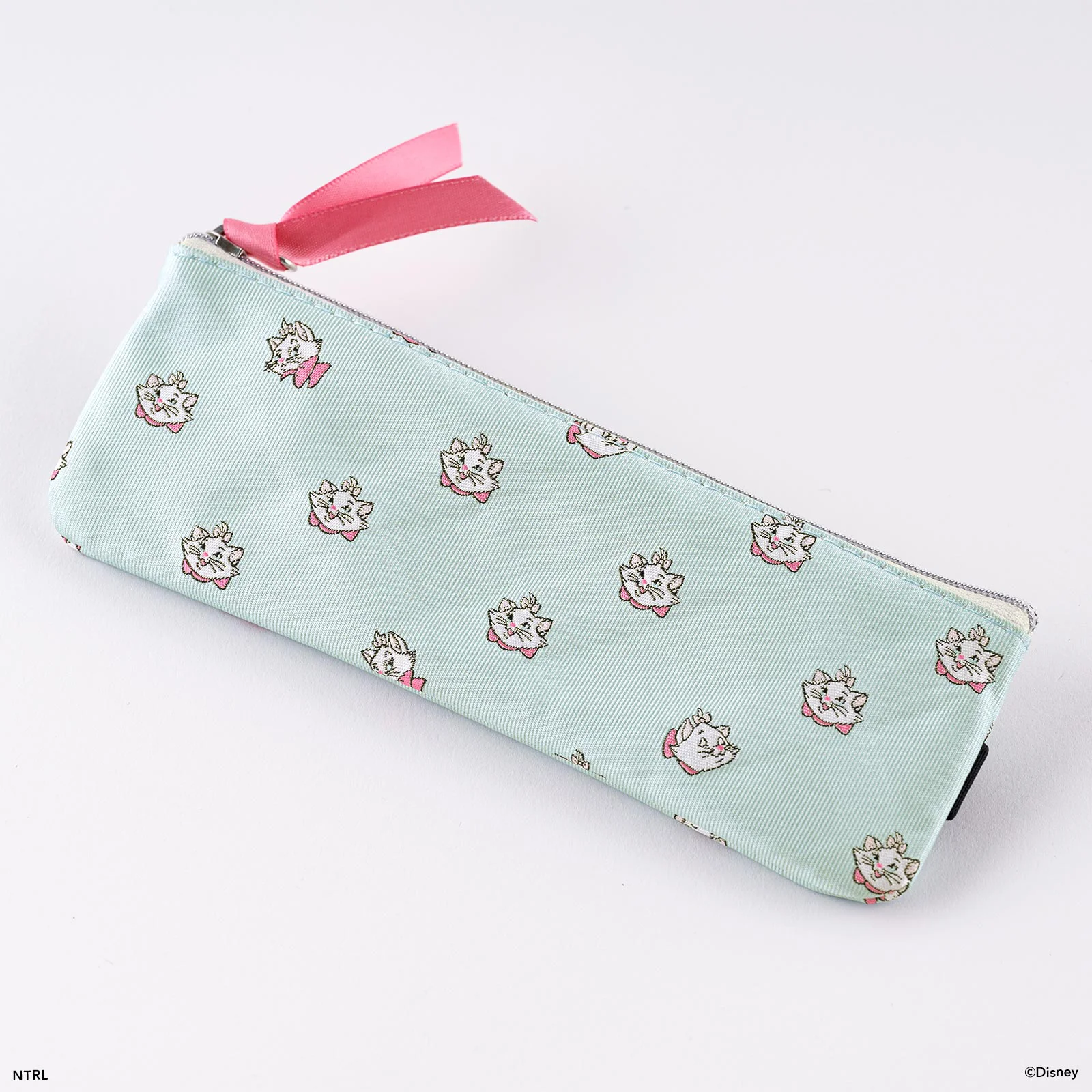 The material is that of the Bow & Tie series, which is the same textured, shiny fabric used in neckties. The gloss and soft touch of the material especially stand out. All the details that make Marie so charming—from the ribbon on her head, to her eyelashes, whiskers, and fur—have been painstakingly embroidered into the fabric. There’s also a picture of Marie with a smug look on her face intermittently included across the pattern.