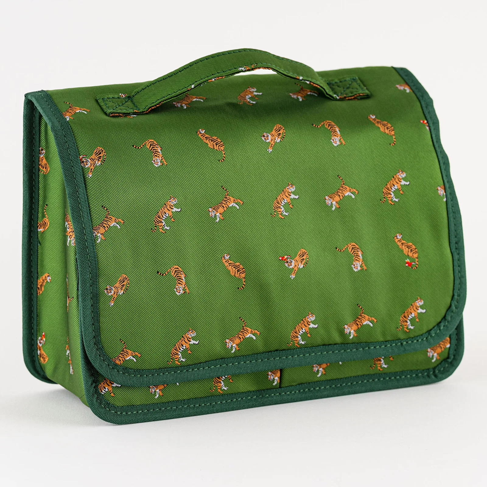 The lid opens wide, so even if you keep a lot of items in the pouch, you can still see what's inside. There's also a handle that makes it convenient for carrying around.