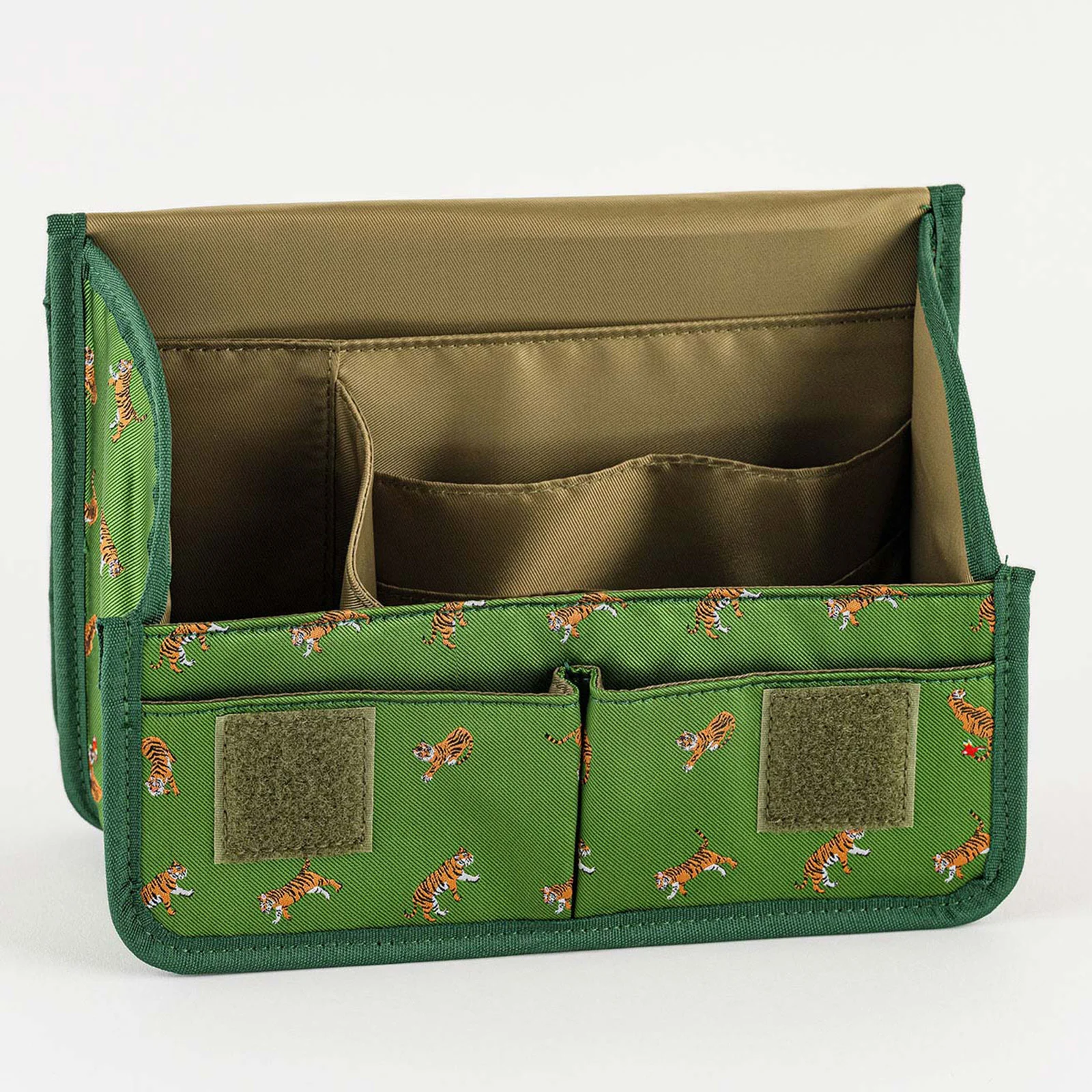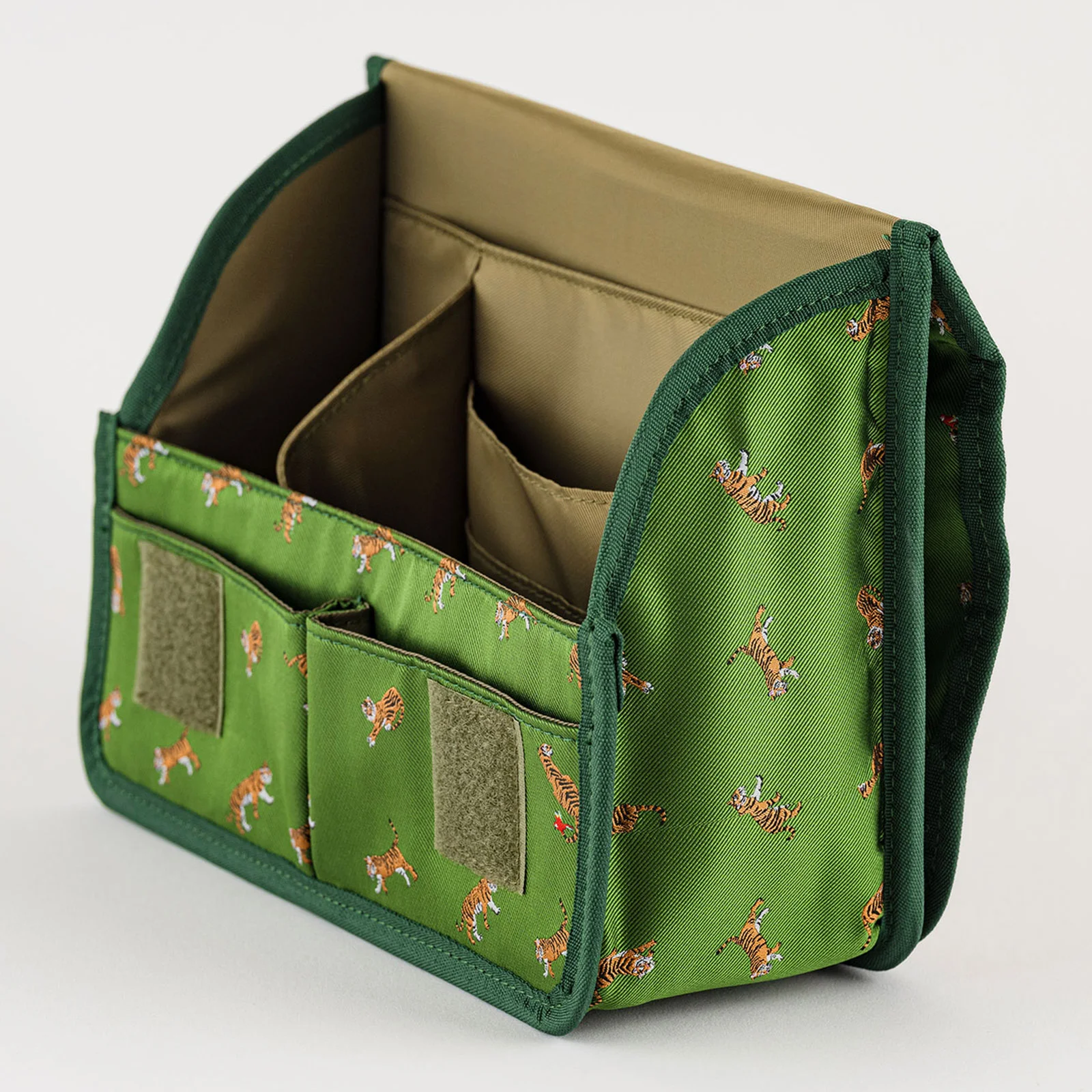 The lid opens and closes easily with hook-and-loop fasteners.
