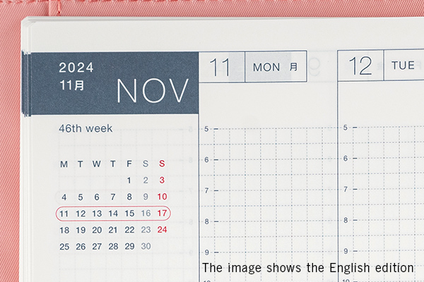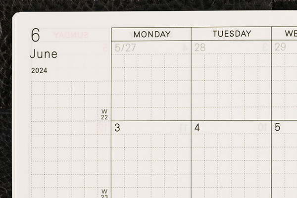 This format pairs a monthly calendar with a graph paper notebook. This allows for flexible use without worrying about dates on the pages.